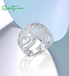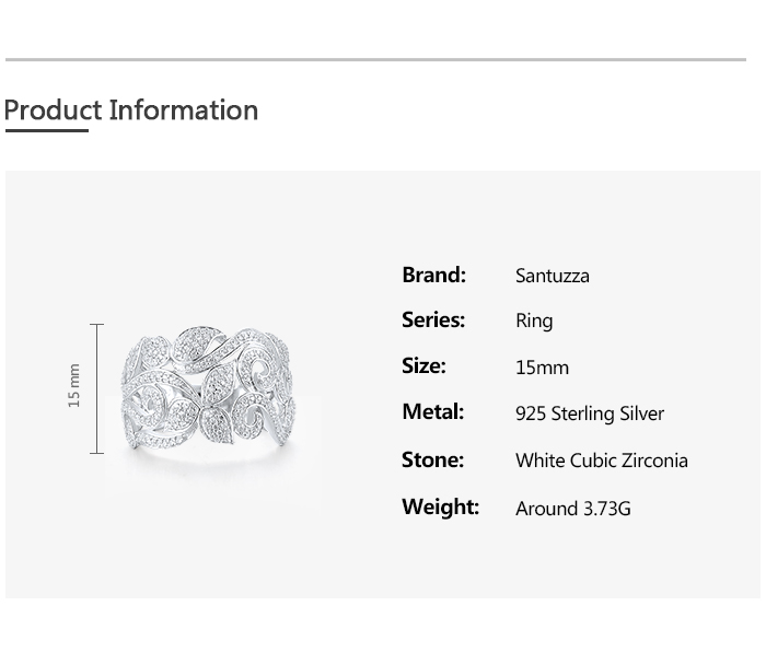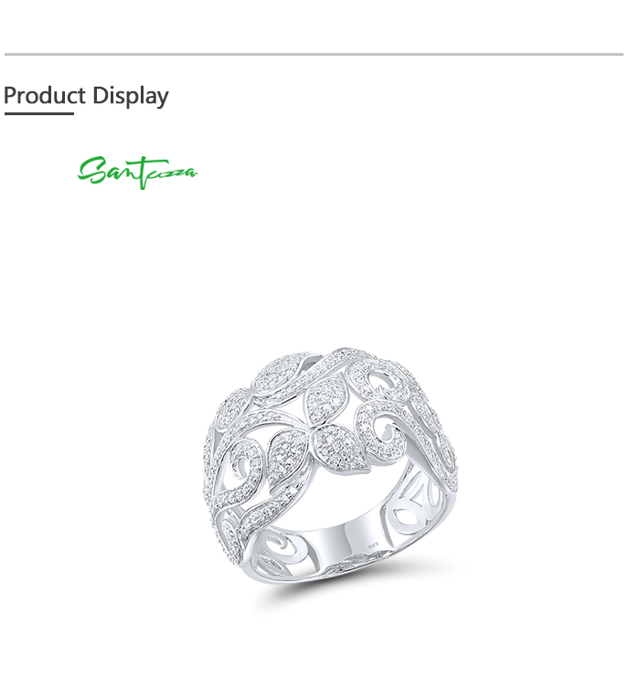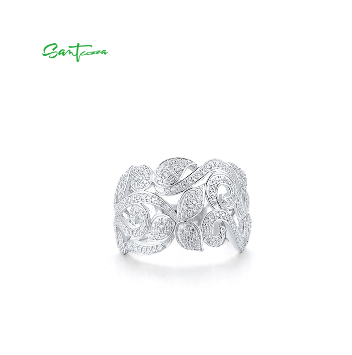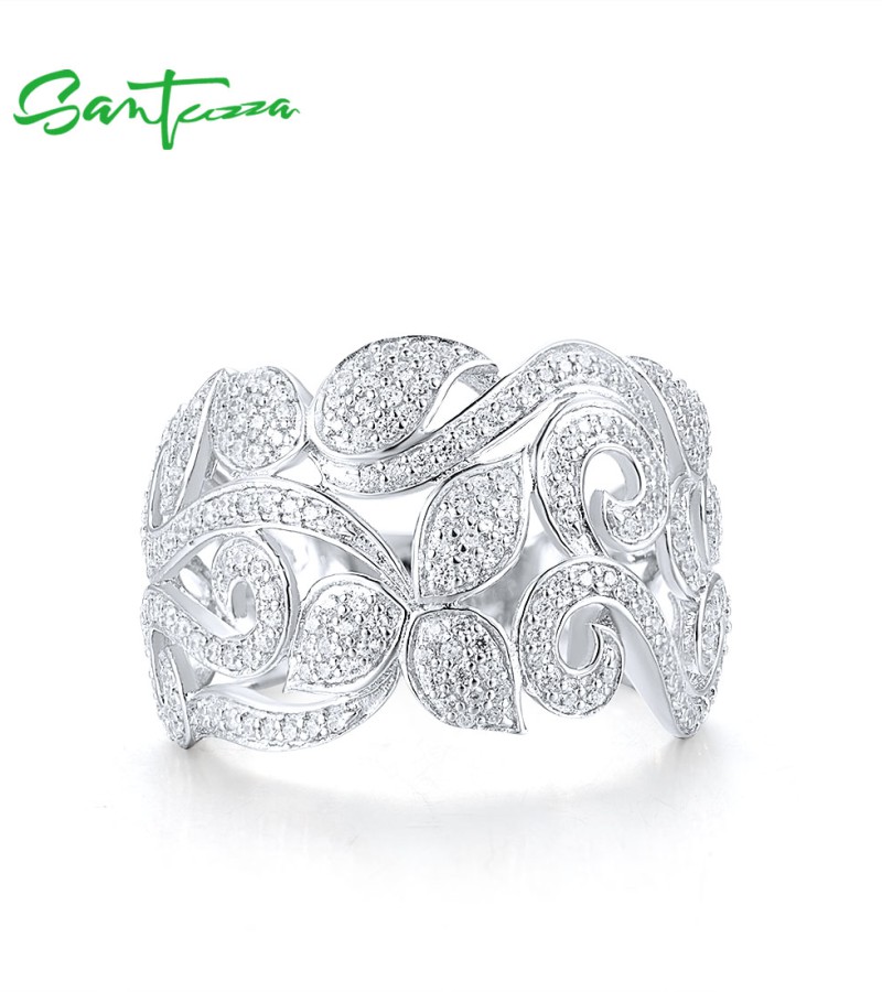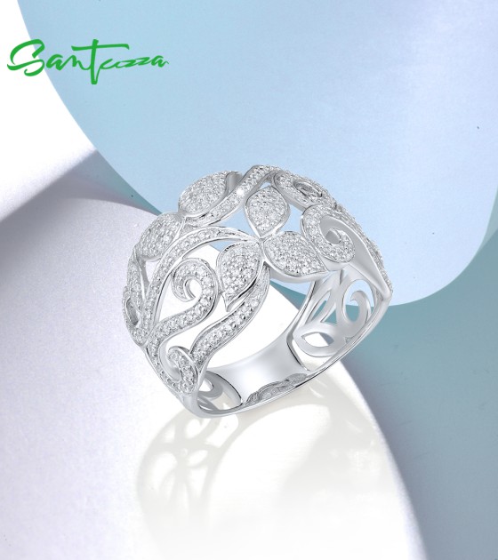 SANTUZZA 925 Sterling Silver Flower Rings White Cubic Zirconia Fine Jewelry