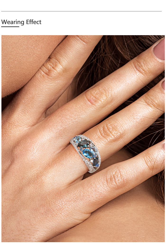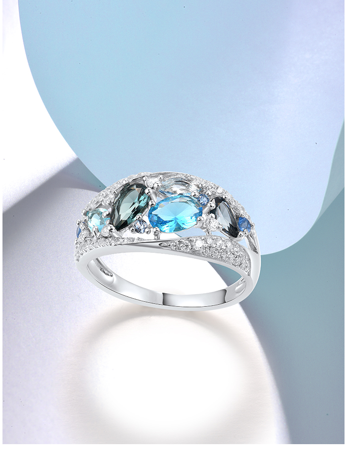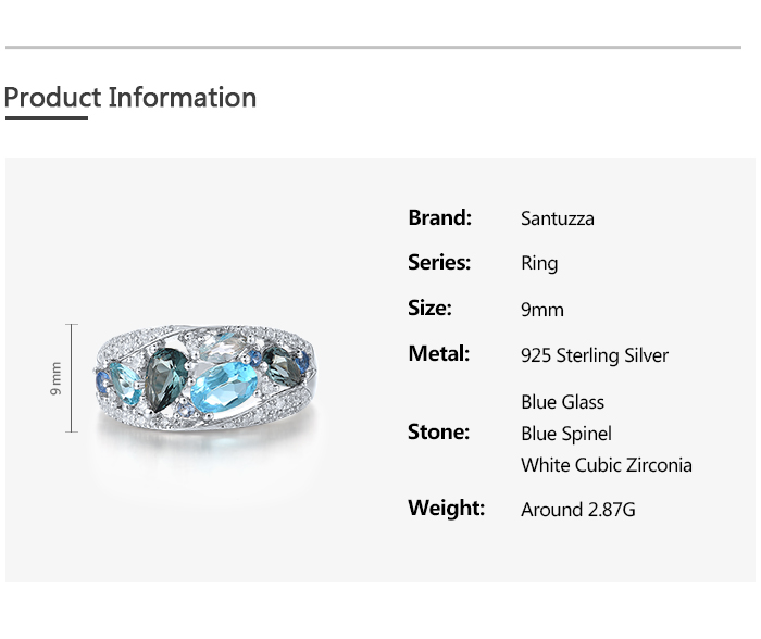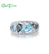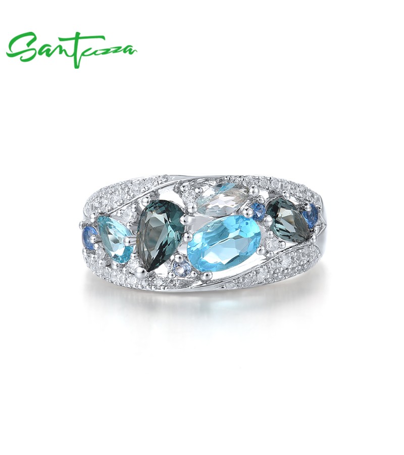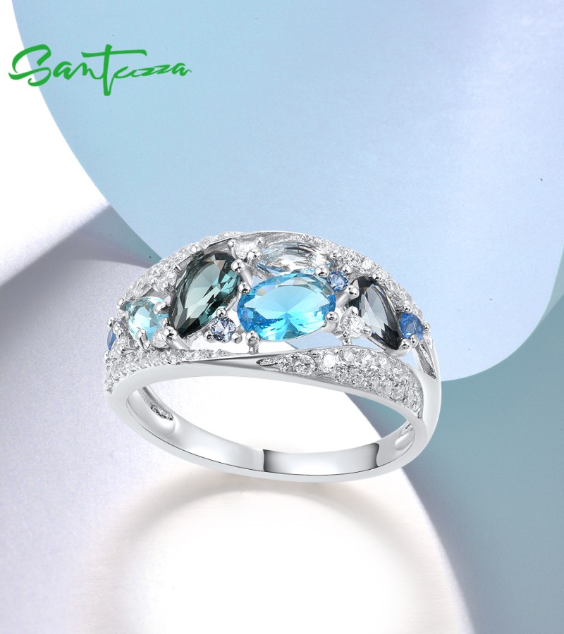 SANTUZZA Silver Rings 925 Sterling Silver Blue Stones White Cubic Zirconia Fine Jewelry