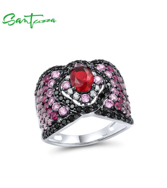 SANTUZZA 925 Sterling Silver Solitaire Ring Created Pink Sapphire Ruby White CZ Fine Jewelry - US 9