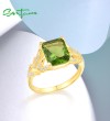 SANTUZZA 925 Sterling Silver Ring Green Glass White Cubic Zirconia Yellow Plated Fine Jewelry - US 9
