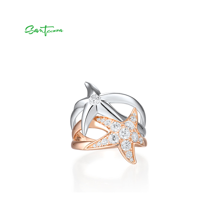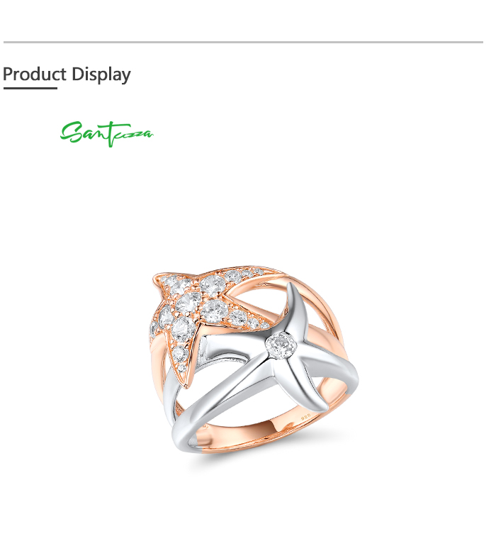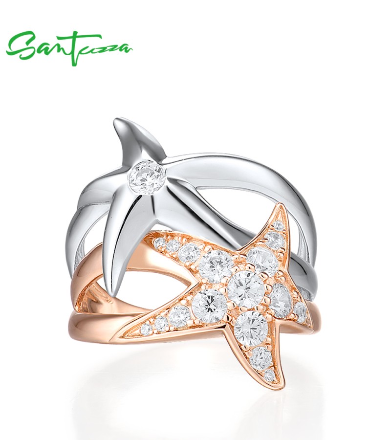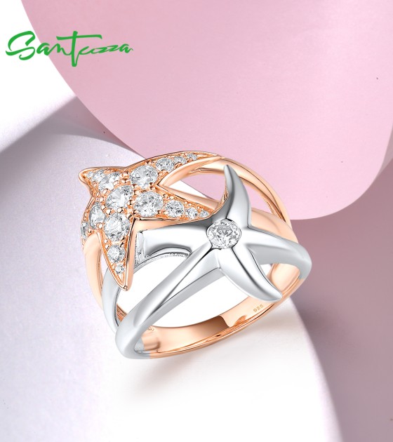 SANTUZZA 925 Silver Rings Sterling Silver White CZ Rose Gold Plated Twinkle Star Geometric Jewelry