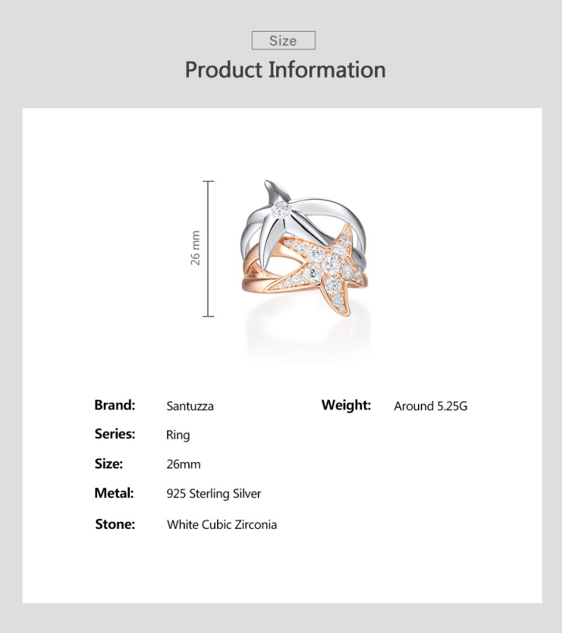 SANTUZZA 925 Silver Rings Sterling Silver White CZ Rose Gold Plated Twinkle Star Geometric Jewelry - US 9