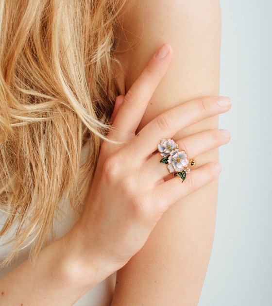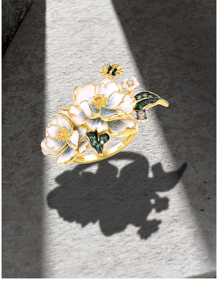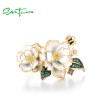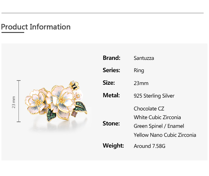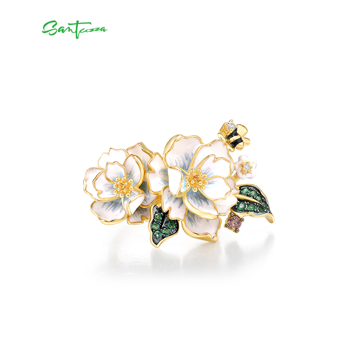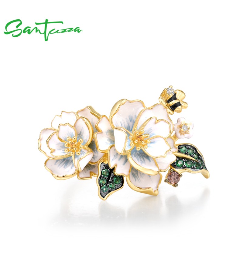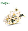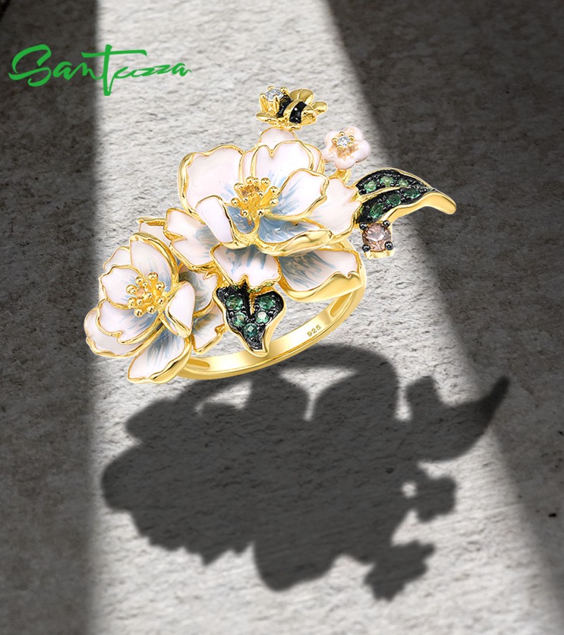 SANTUZZA 925 Sterling Silver Rings Green Spinel Yellow White CZ Enamel Flower Fine Jewelry