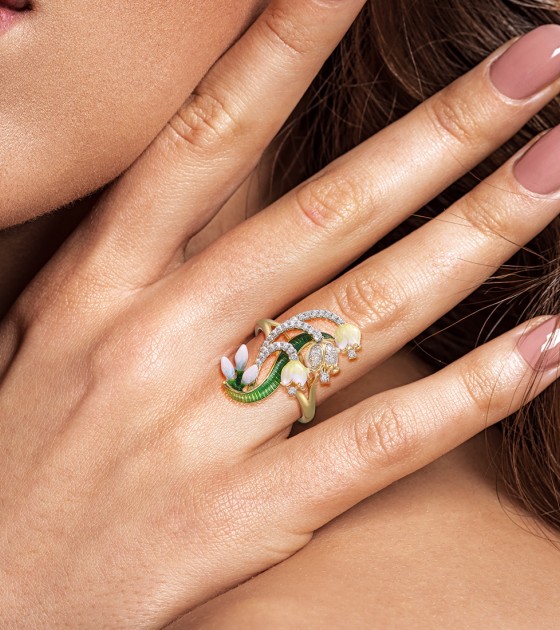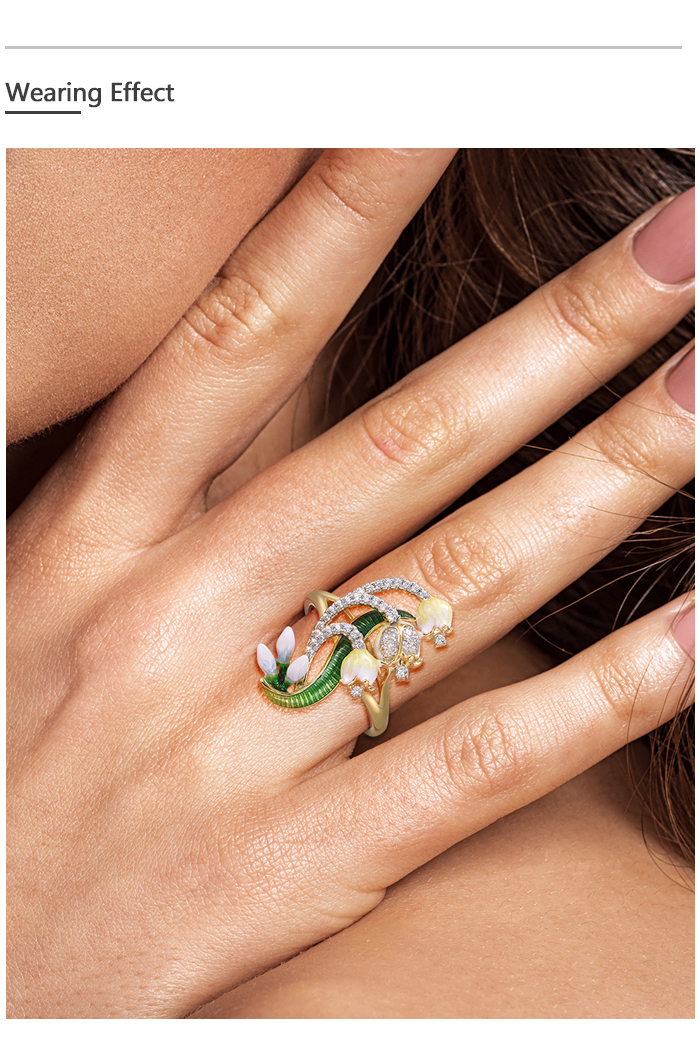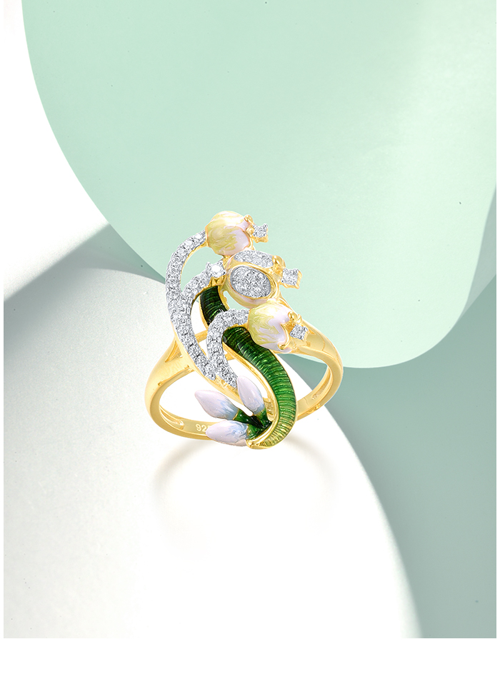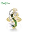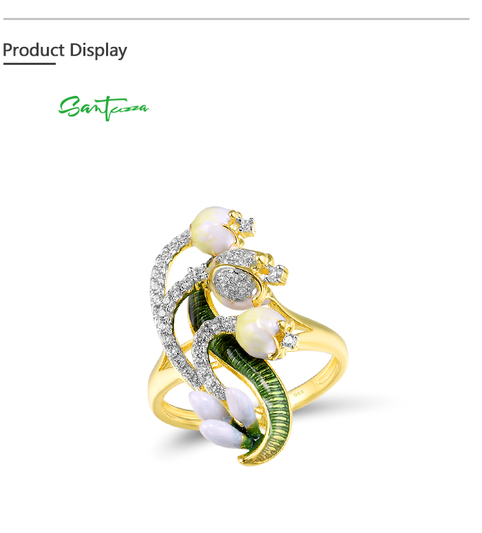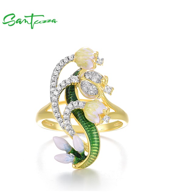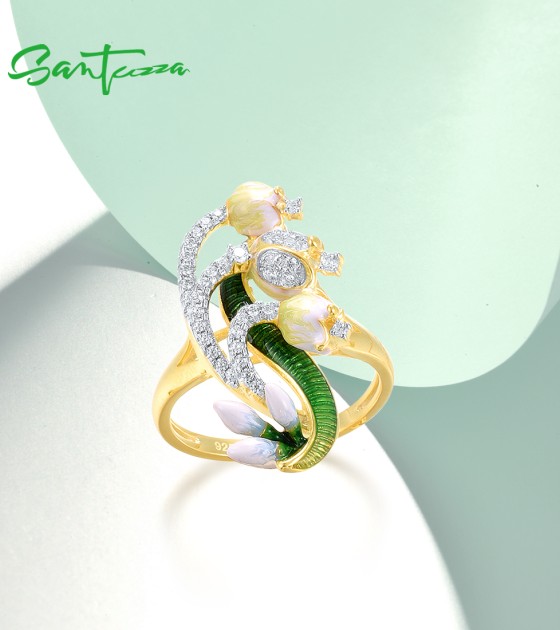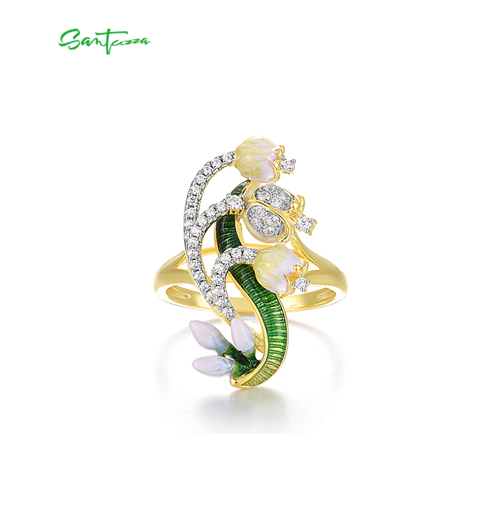 SANTUZZA 925 Sterling Silver Rings White CZ Handmade Enamel Flower Ring Delicate Fine Jewelry