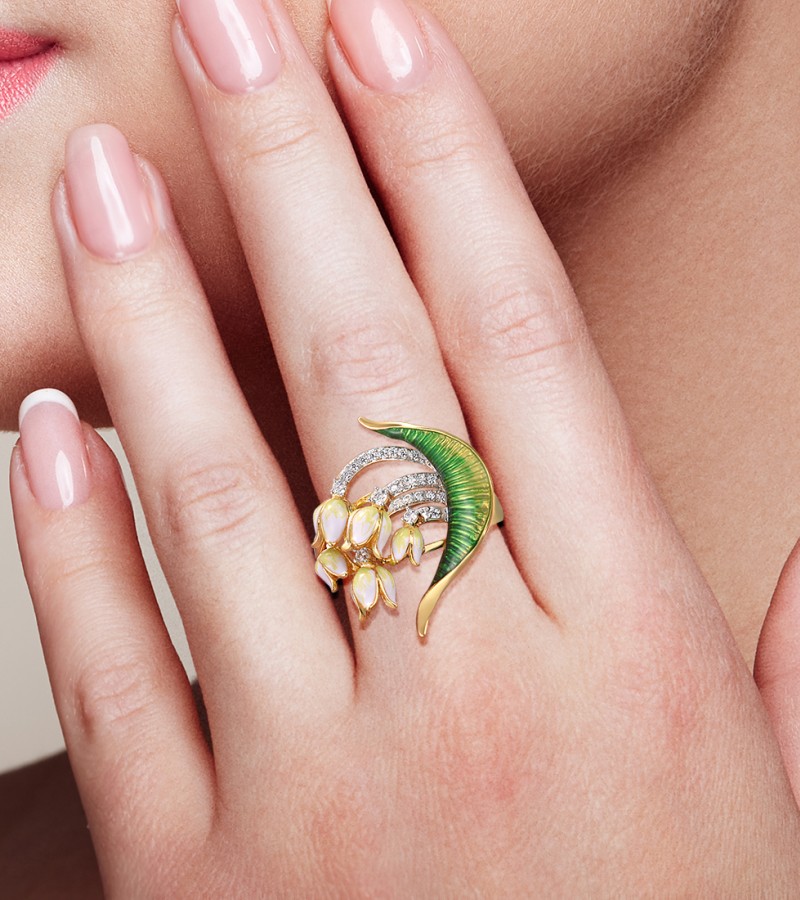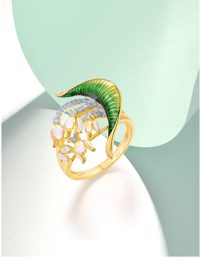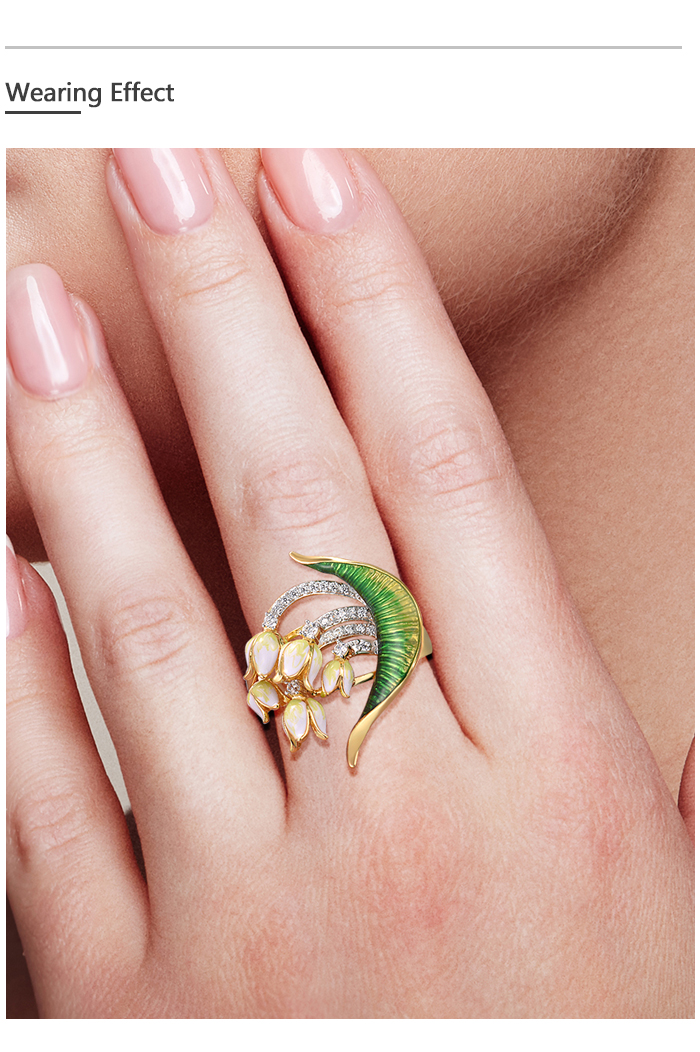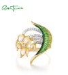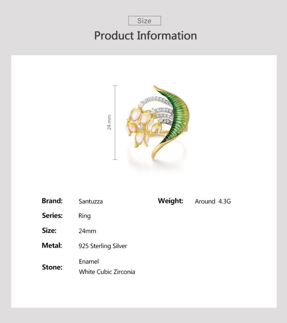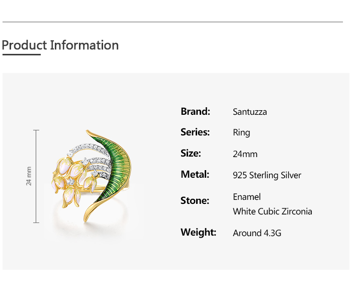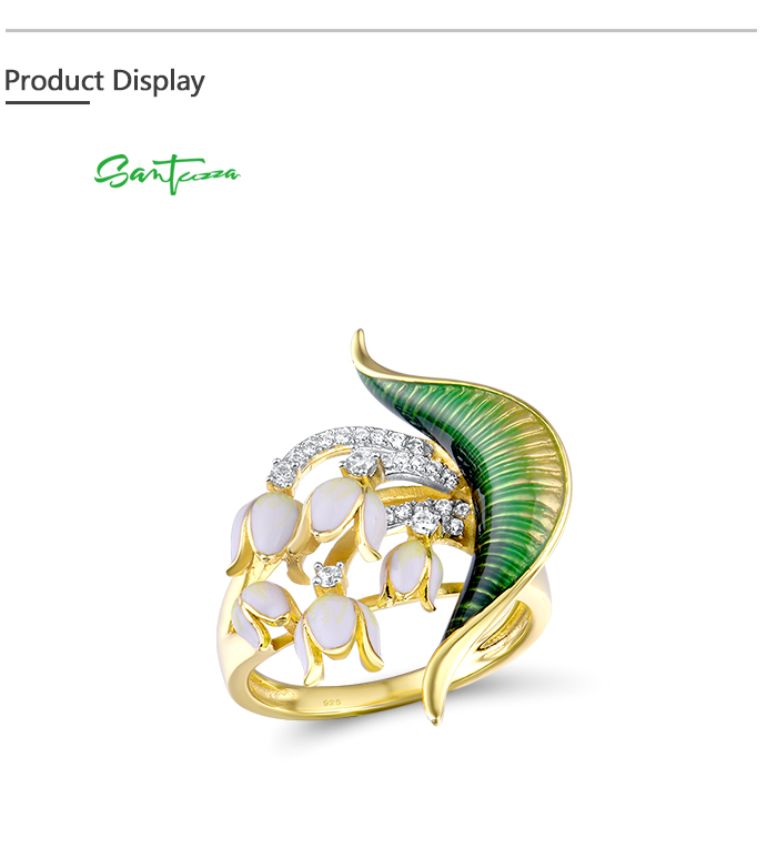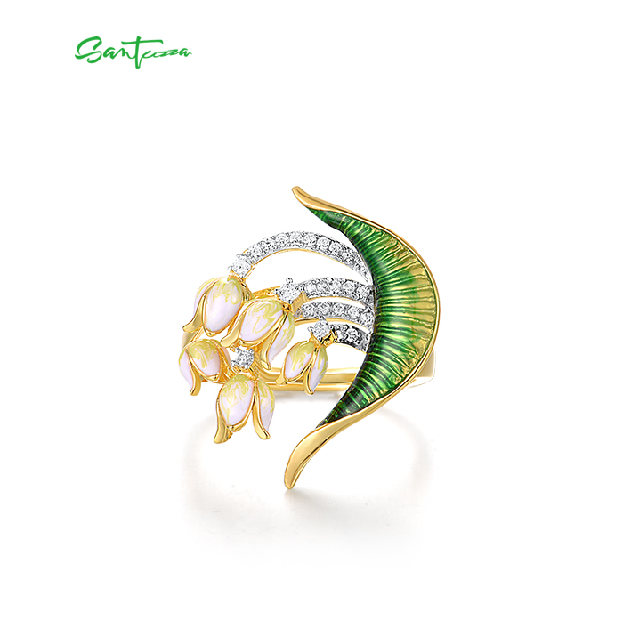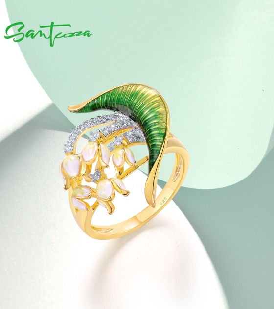 SANTUZZA 925 Sterling Silver Handmade Rings White Cubic Zirconia Enamel Flower Ring Fine Jewelry