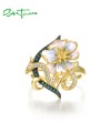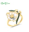 SANTUZZA 925 Sterling Silver Rings Green Spinel White CZ Handmade Enamel Flower Fine Jewelry