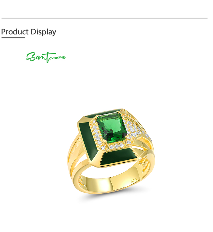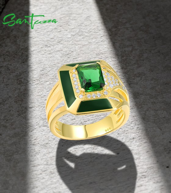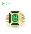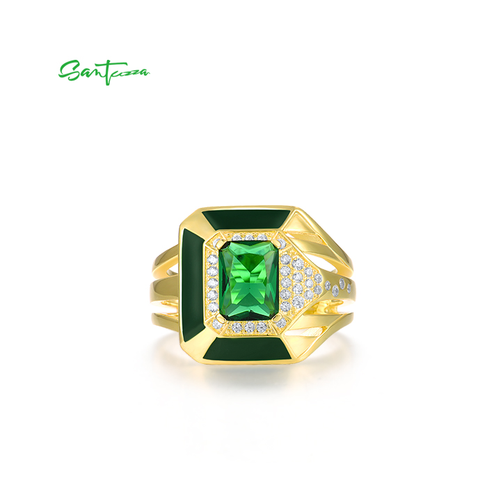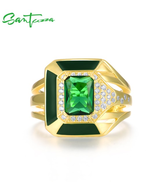 SANTUZZA 925 Sterling Silver Enamel Rings Green Stones White CZ Solitaire Ring Fine Jewelry