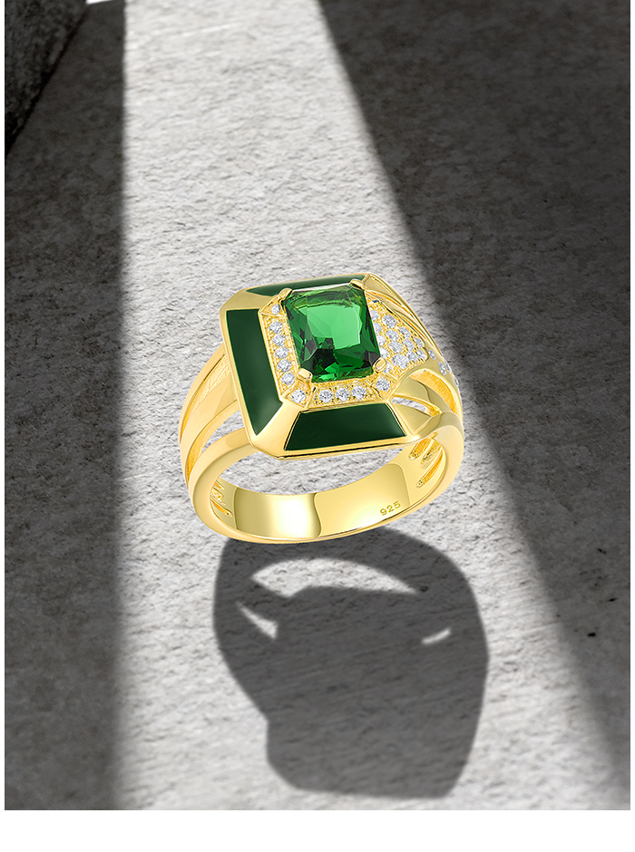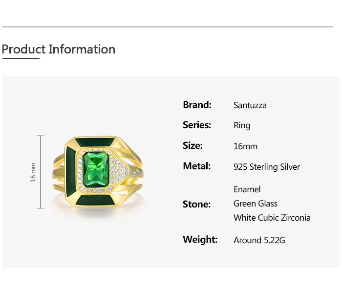 SANTUZZA 925 Sterling Silver Enamel Rings Green Stones White CZ Solitaire Ring Fine Jewelry - US 9