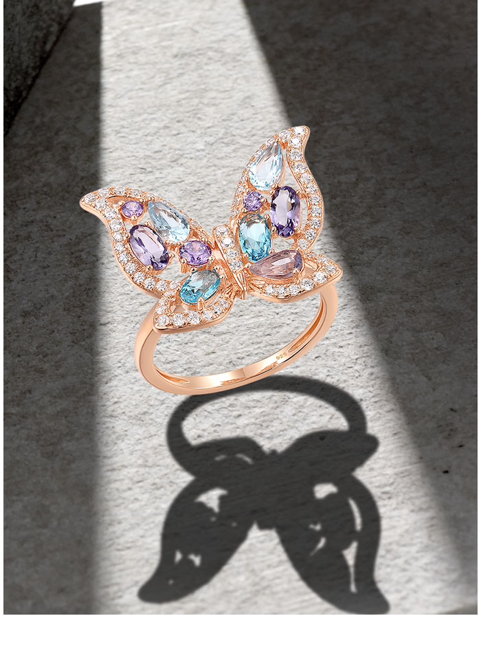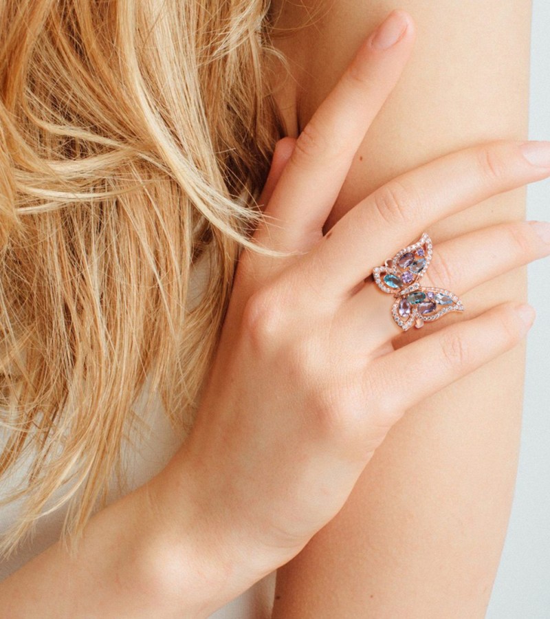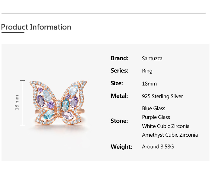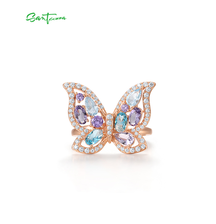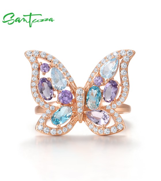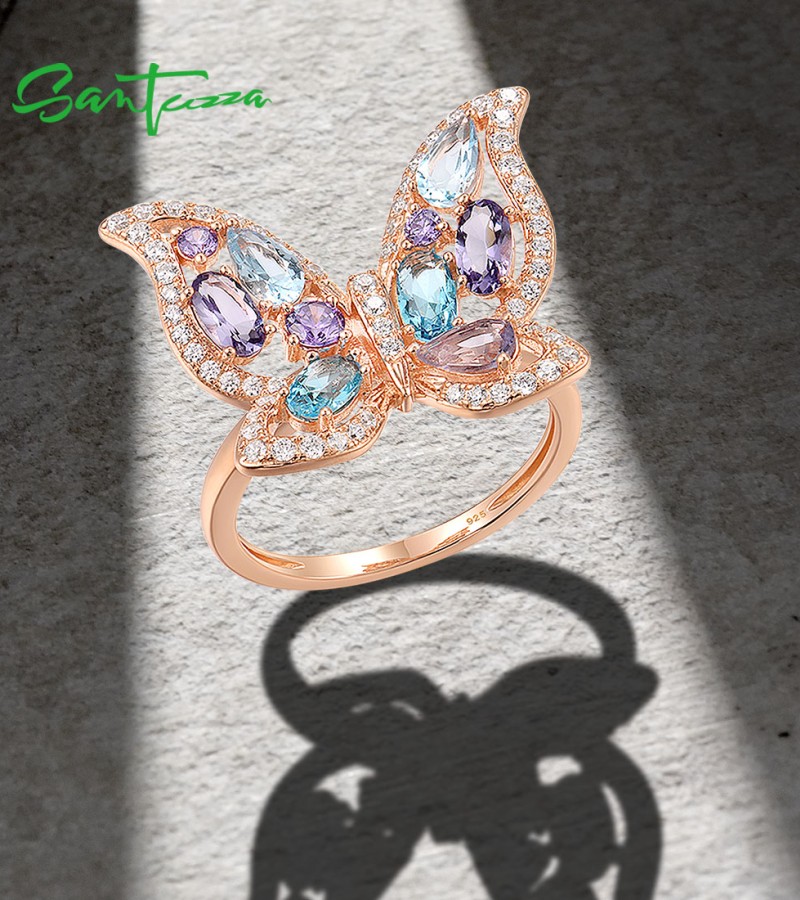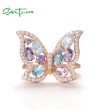 SANTUZZA 925 Sterling Silver Ring Colorful Gems Butterfly Ring Jewelry
