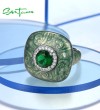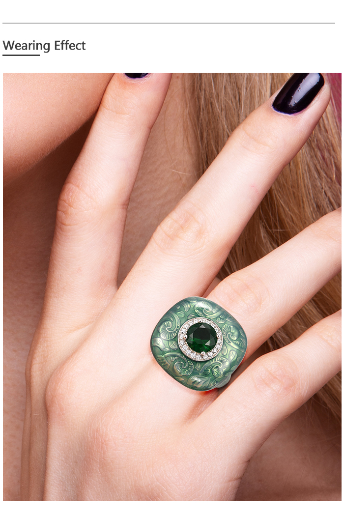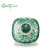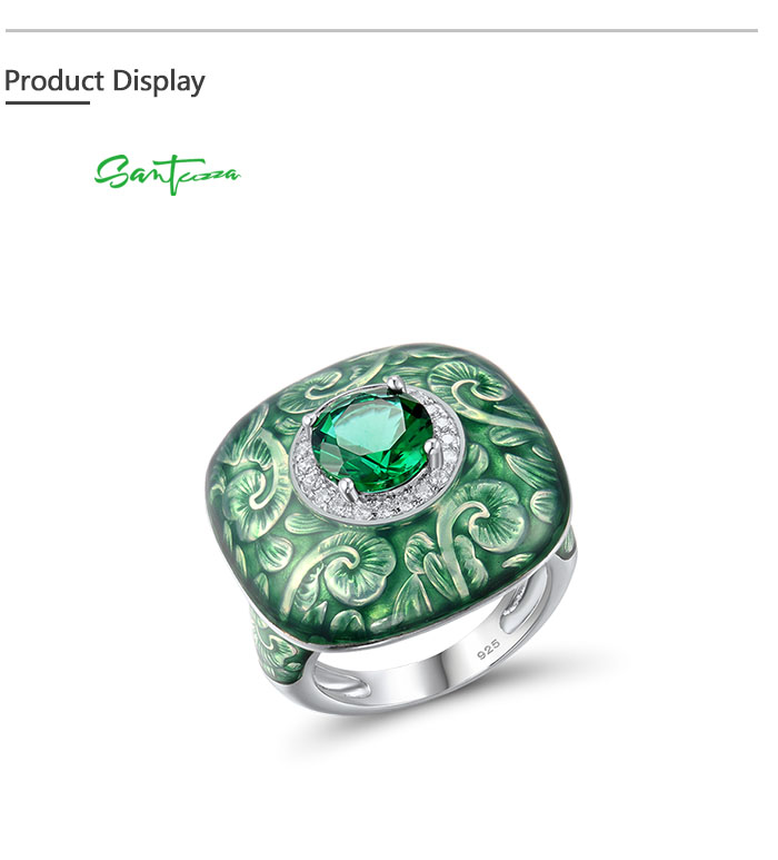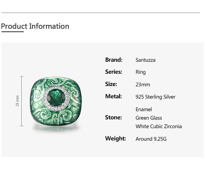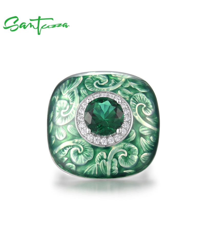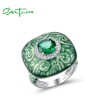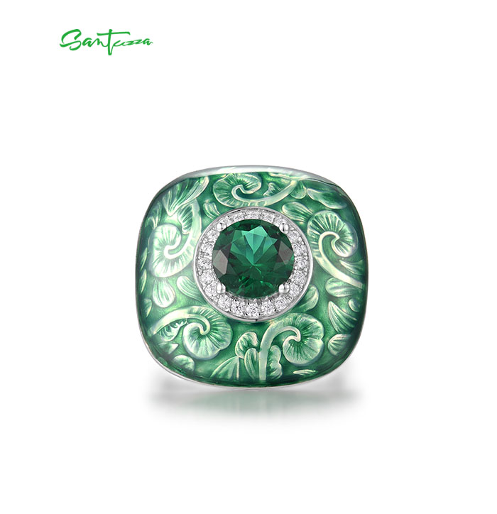 SANTUZZA 925 Sterling Silver Enamel Rings Green Glass White CZ Square Ring Fine Jewelry