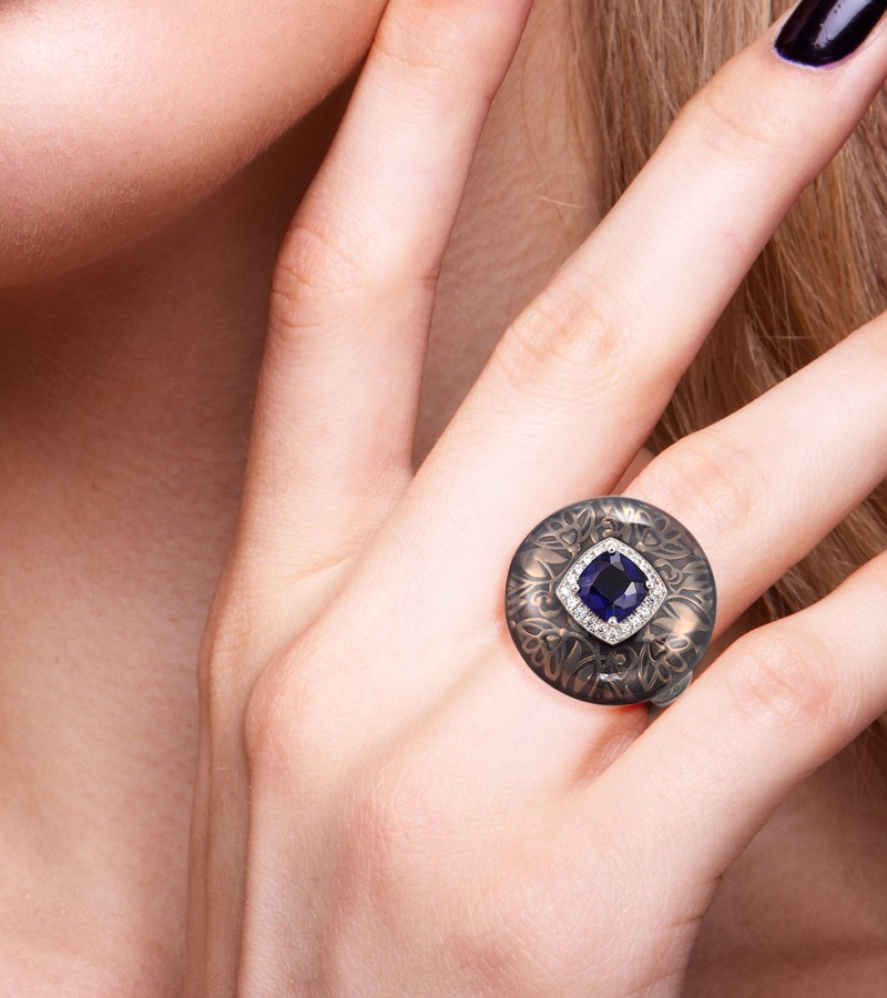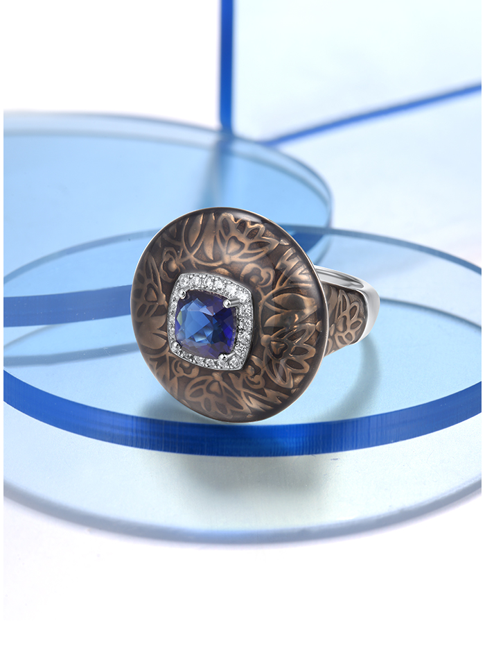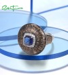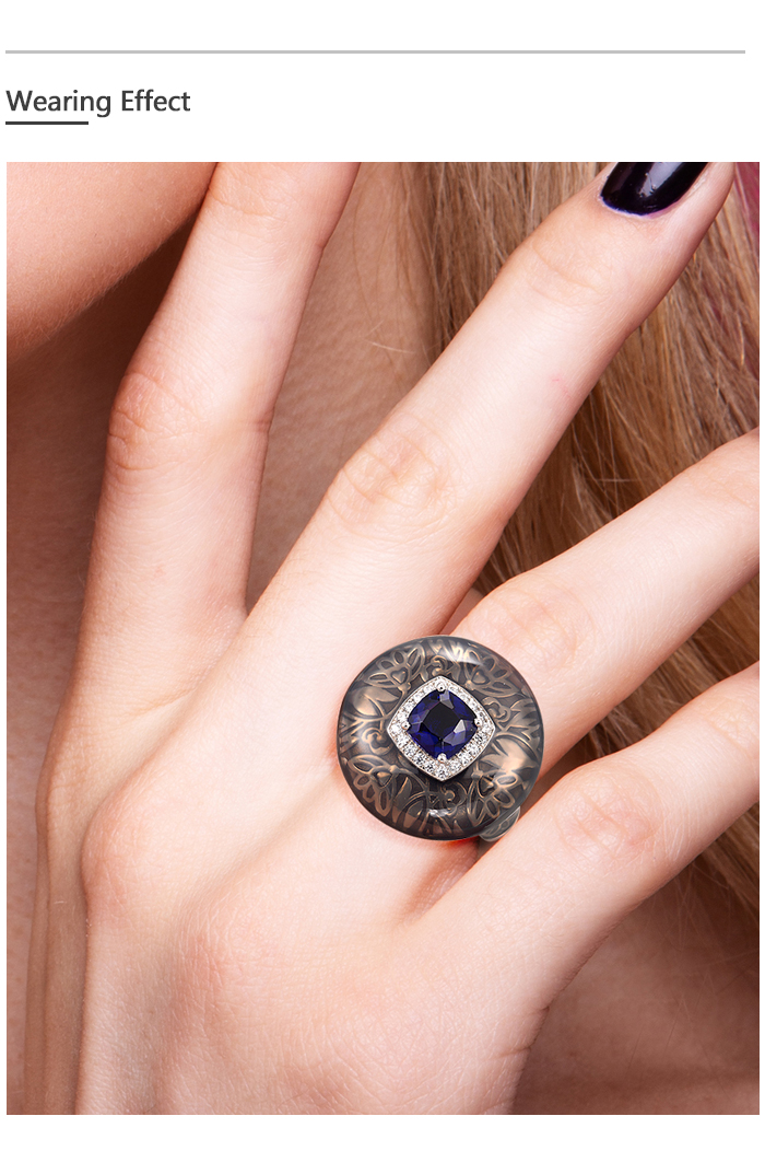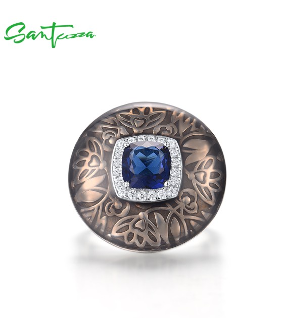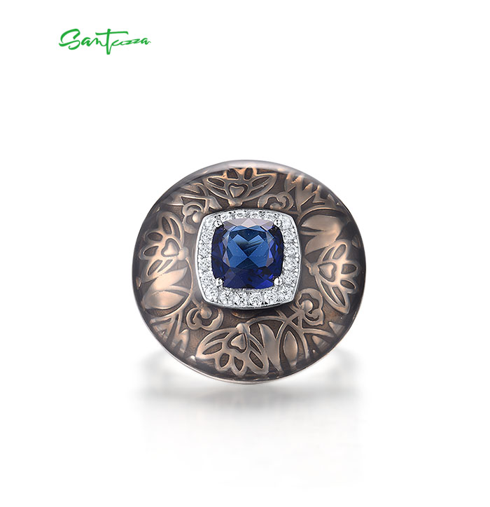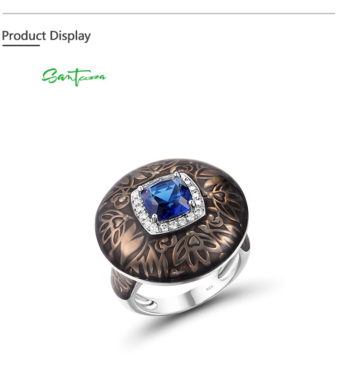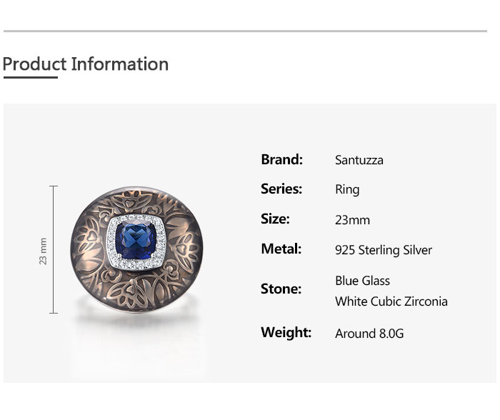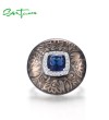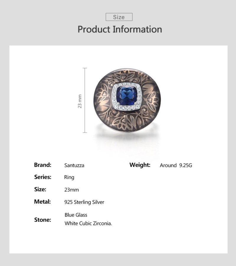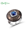 SANTUZZA 925 Sterling Silver Rings Blue Glass White CZ Handmade Enamel Round Ring Fine Jewelry
