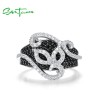 SANTUZZA 925 Sterling Silver Rings Black Spinel White Cubic Zirconia Jewelry