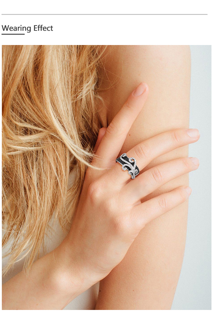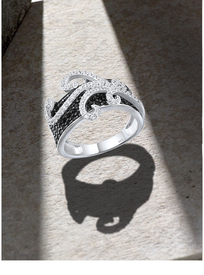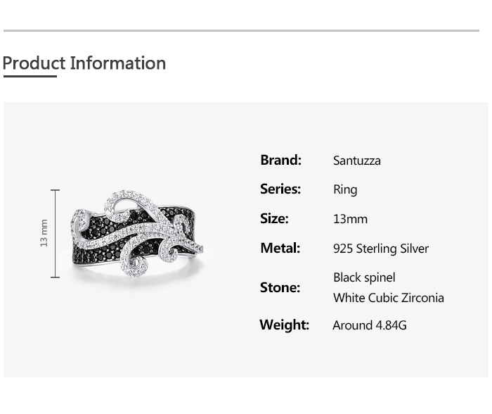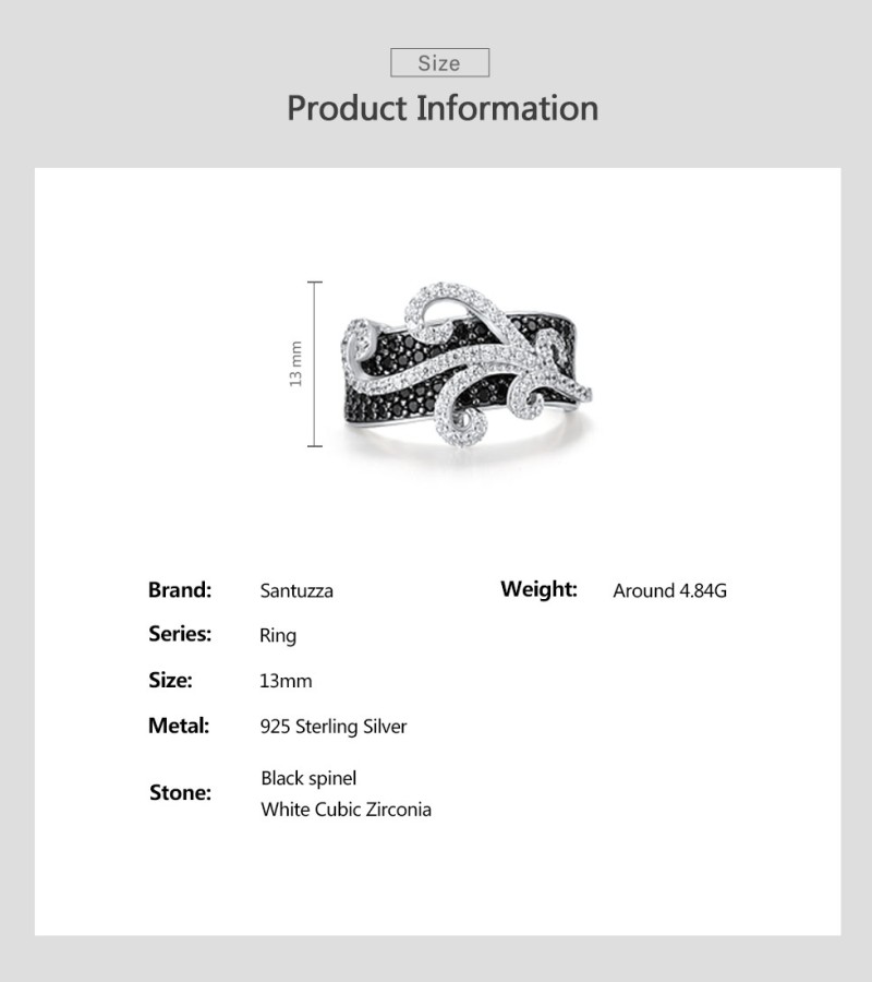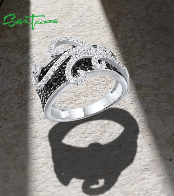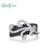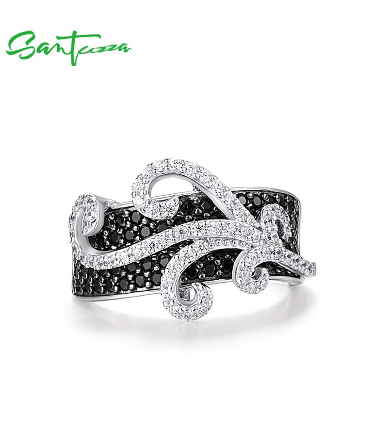 SANTUZZA 925 Sterling Silver Rings Black Spinel White Cubic Zirconia Jewelry