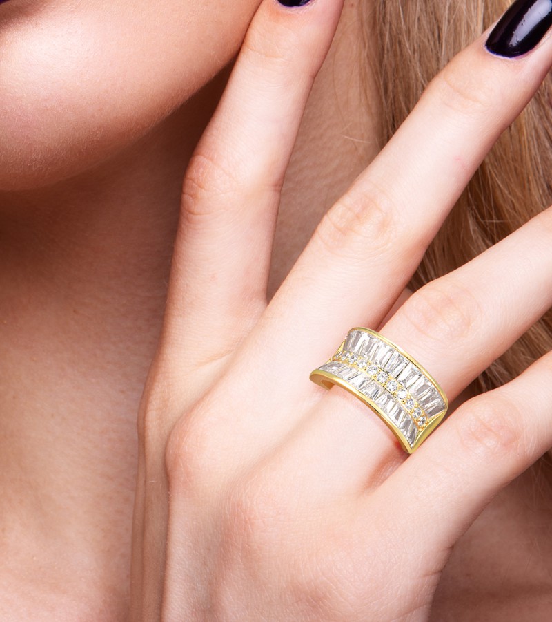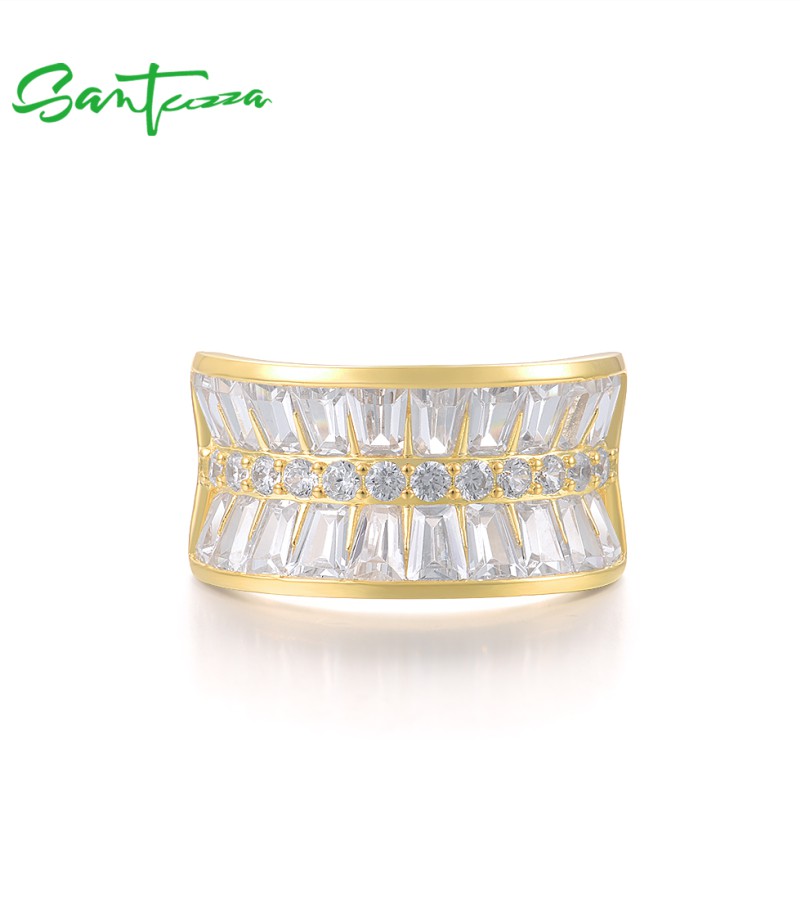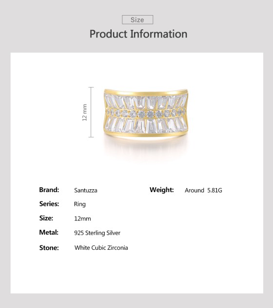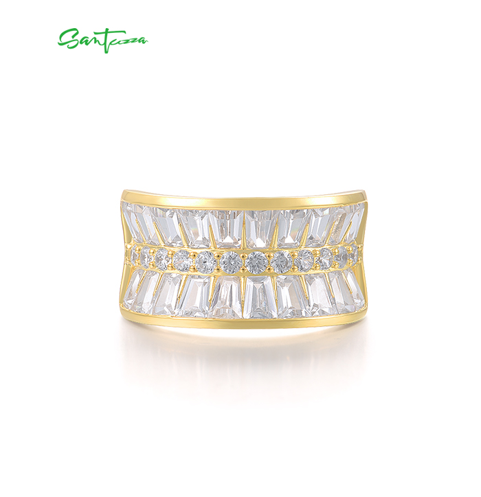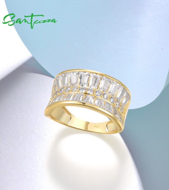 SANTUZZA 925 Sterling Silver Rings White Cubic Zirconia Fine Jewelry