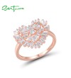 SANTUZZA 925 Sterling Silver Rings White Cubic Zirconia Rose Gold Color Heart Fine Jewelry