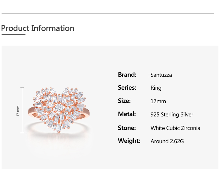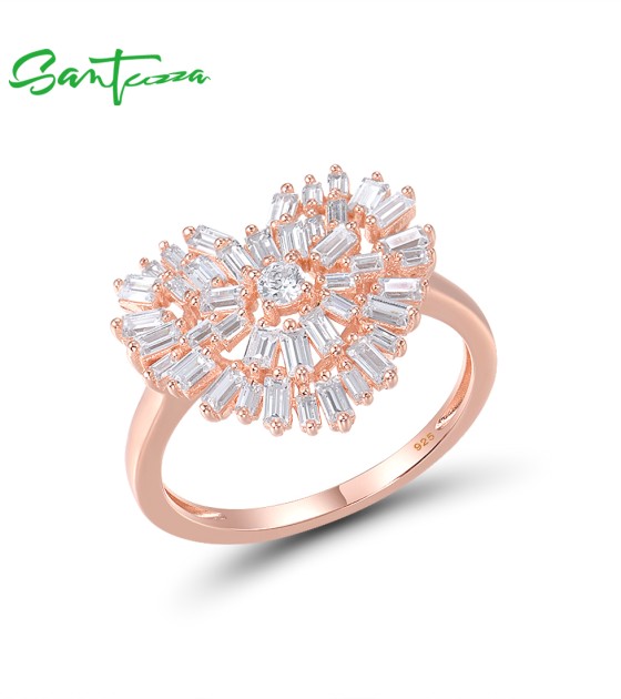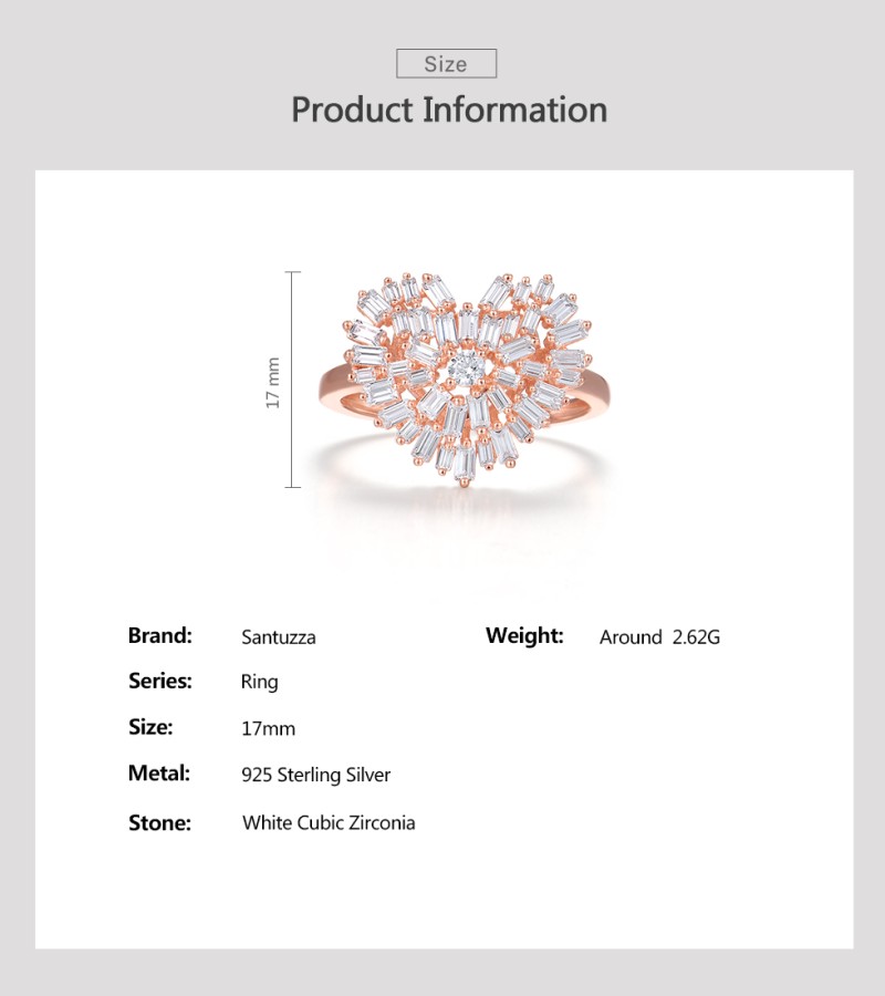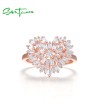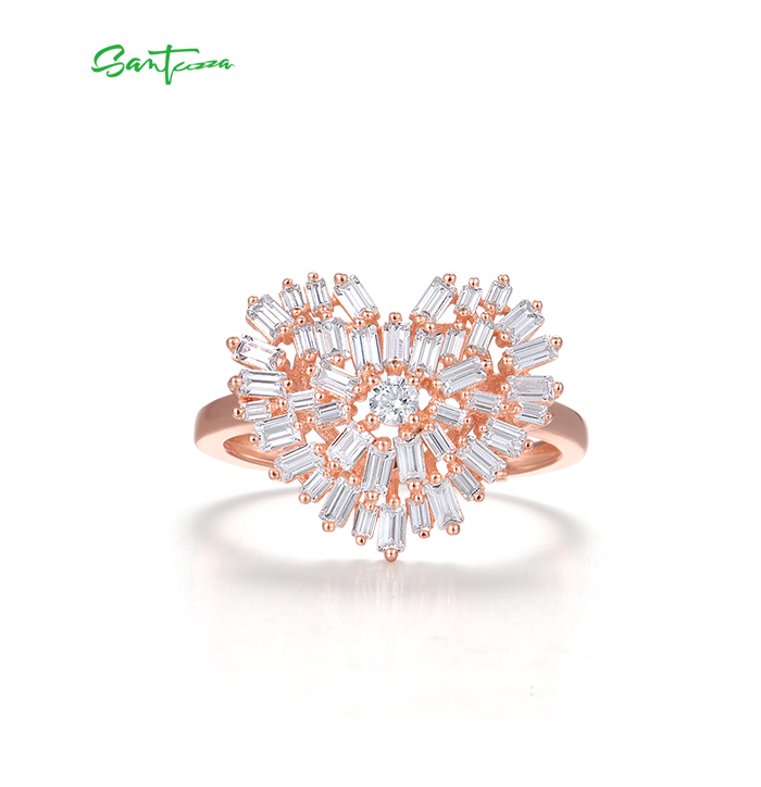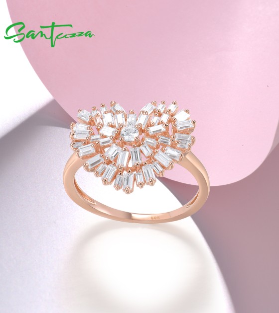SANTUZZA 925 Sterling Silver Rings White Cubic Zirconia Rose Gold Color Heart Fine Jewelry