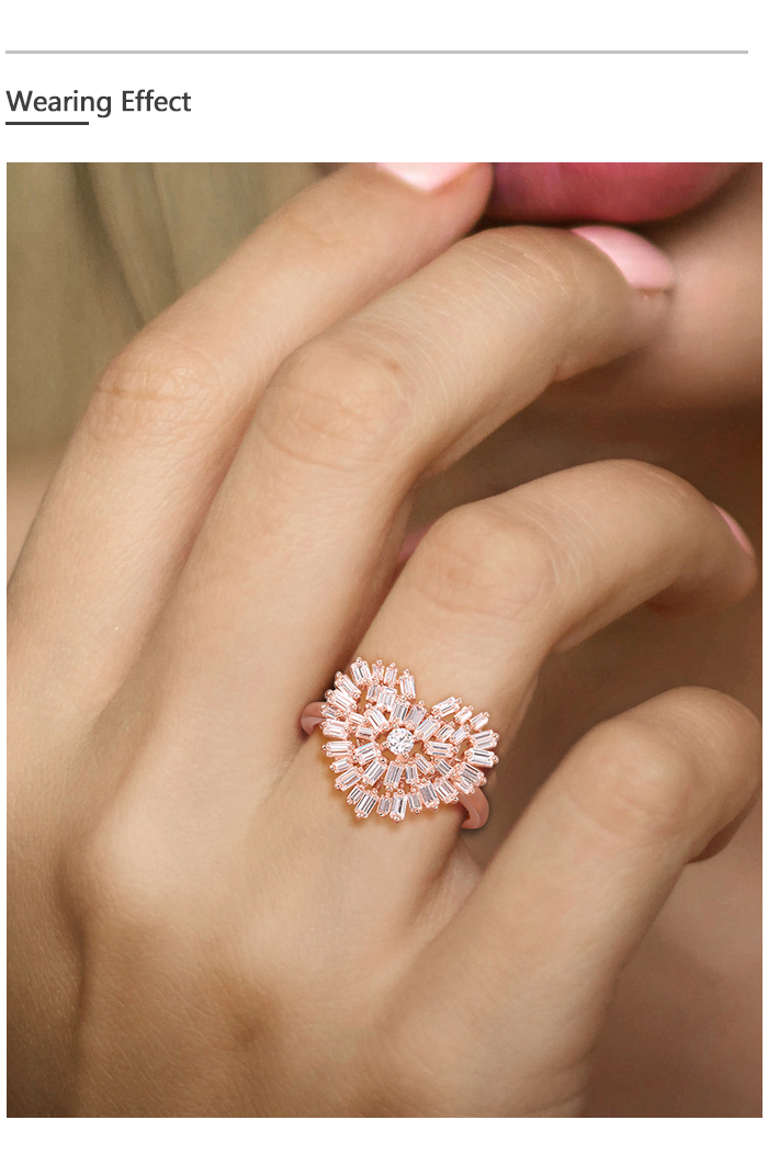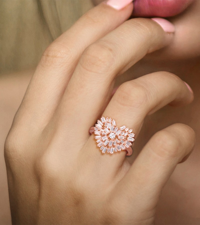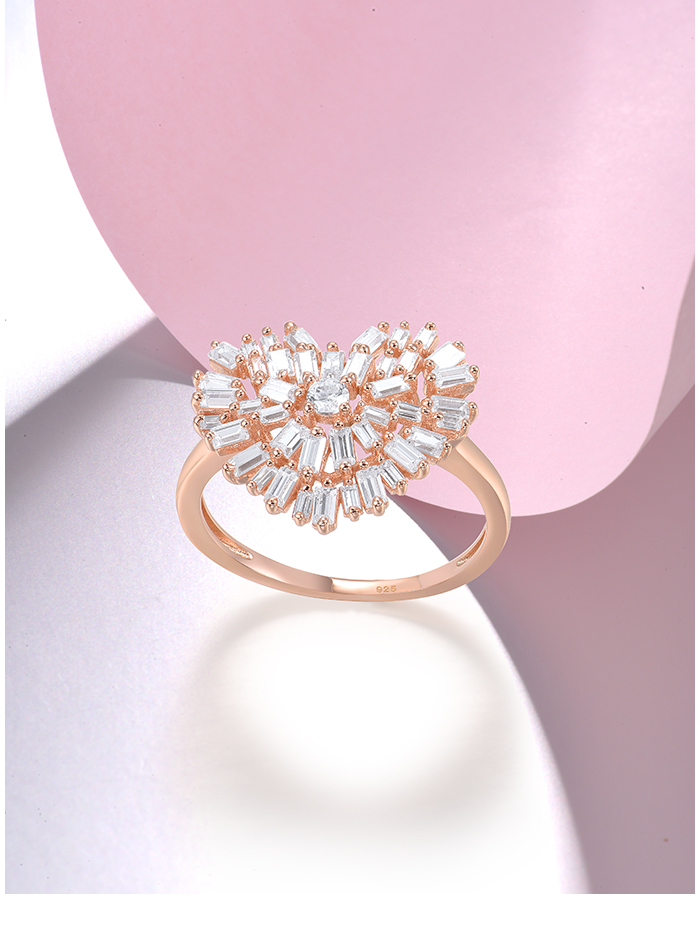 SANTUZZA 925 Sterling Silver Rings White Cubic Zirconia Rose Gold Color Heart Fine Jewelry - US 9
