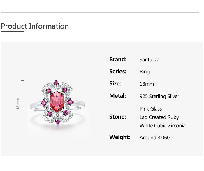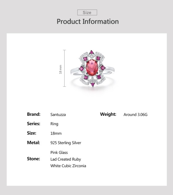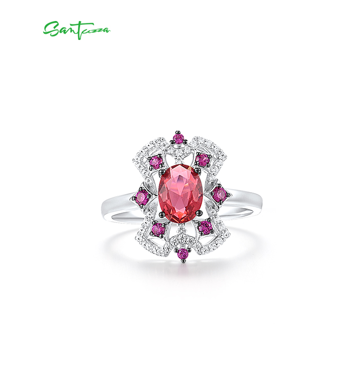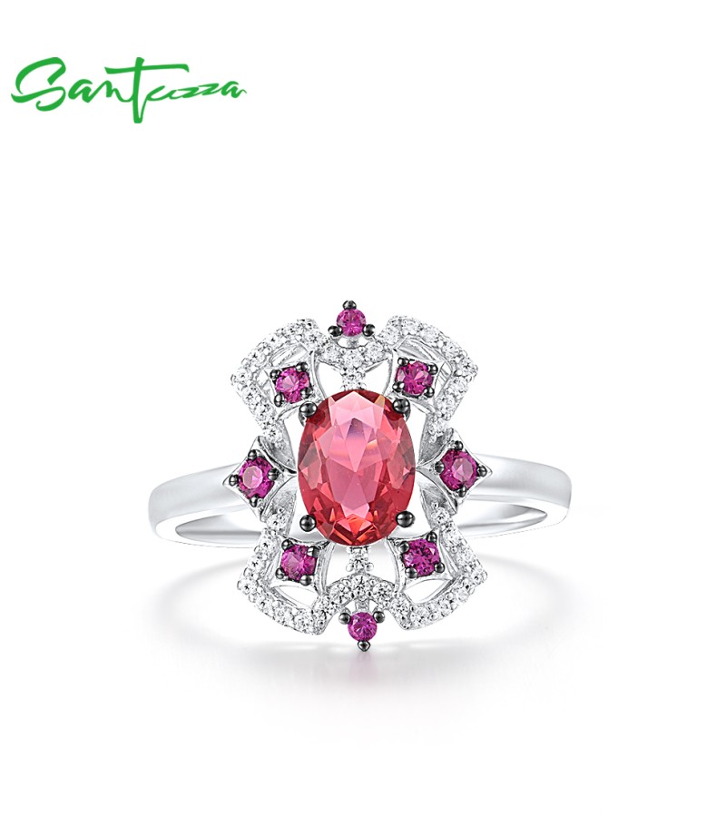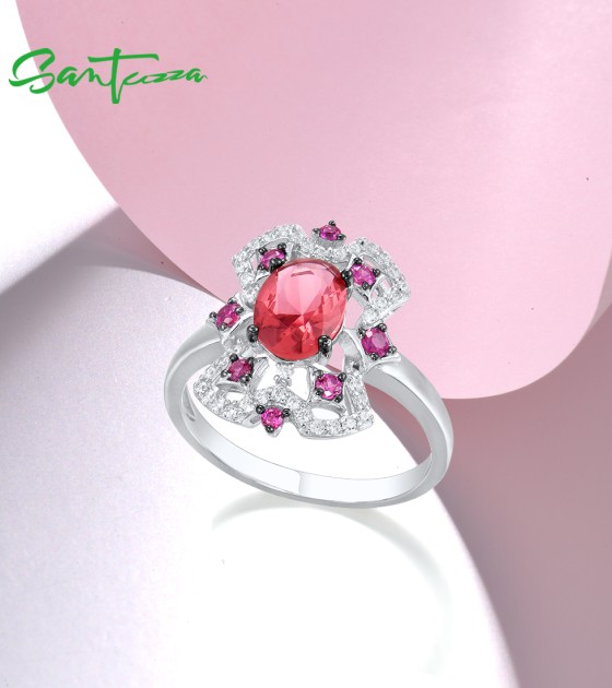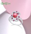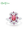 SANTUZZA 925 Sterling Silver Rings Pink Red Stone White Cubic Zirconia Solitaire Ring Fine Jewelry