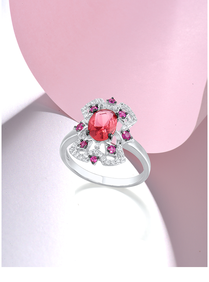 SANTUZZA 925 Sterling Silver Rings Pink Red Stone White Cubic Zirconia Solitaire Ring Fine Jewelry - US 7