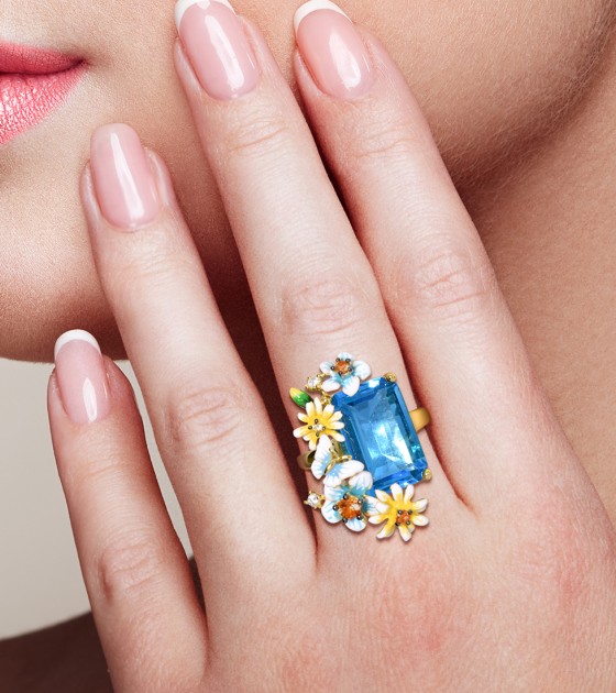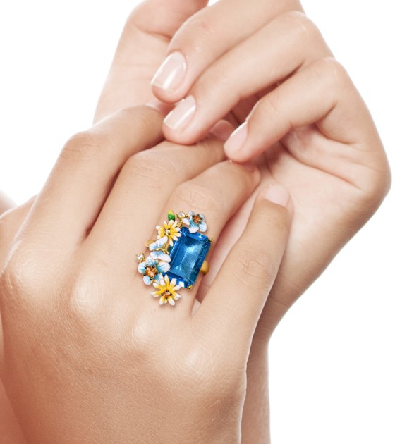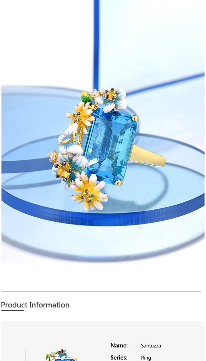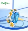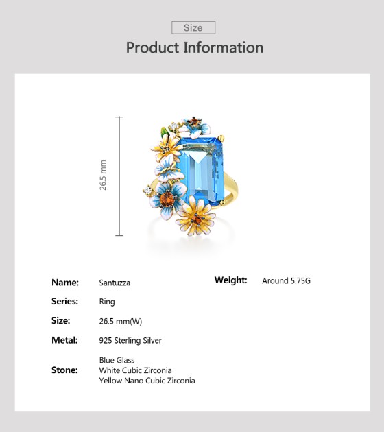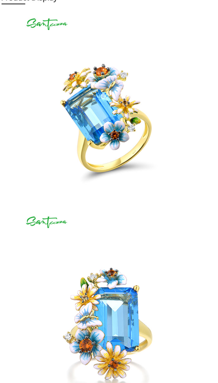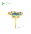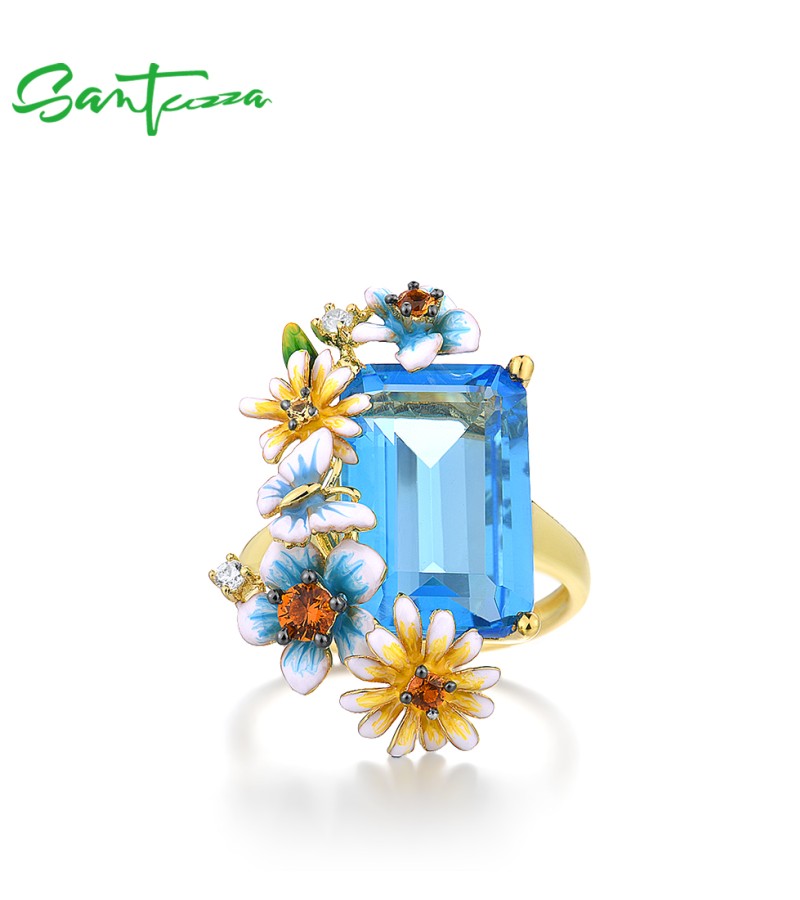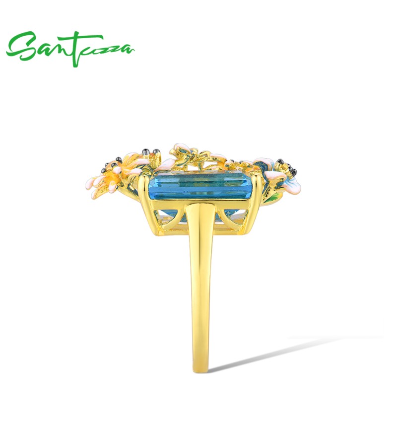 SANTUZZA 925 Sterling Silver Rings Gold Color Blue Stone Enamel Flowers Butterfly Fine Jewelry