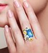 SANTUZZA 925 Sterling Silver Rings Gold Color Blue Stone Enamel Flowers Butterfly Fine Jewelry - US 9