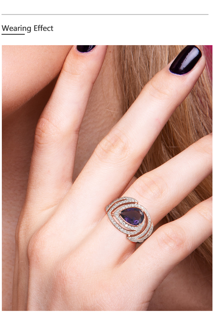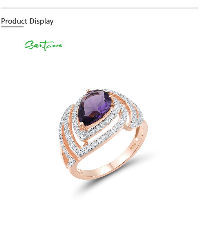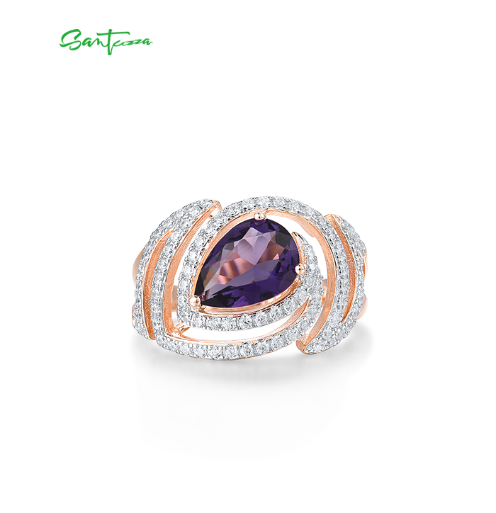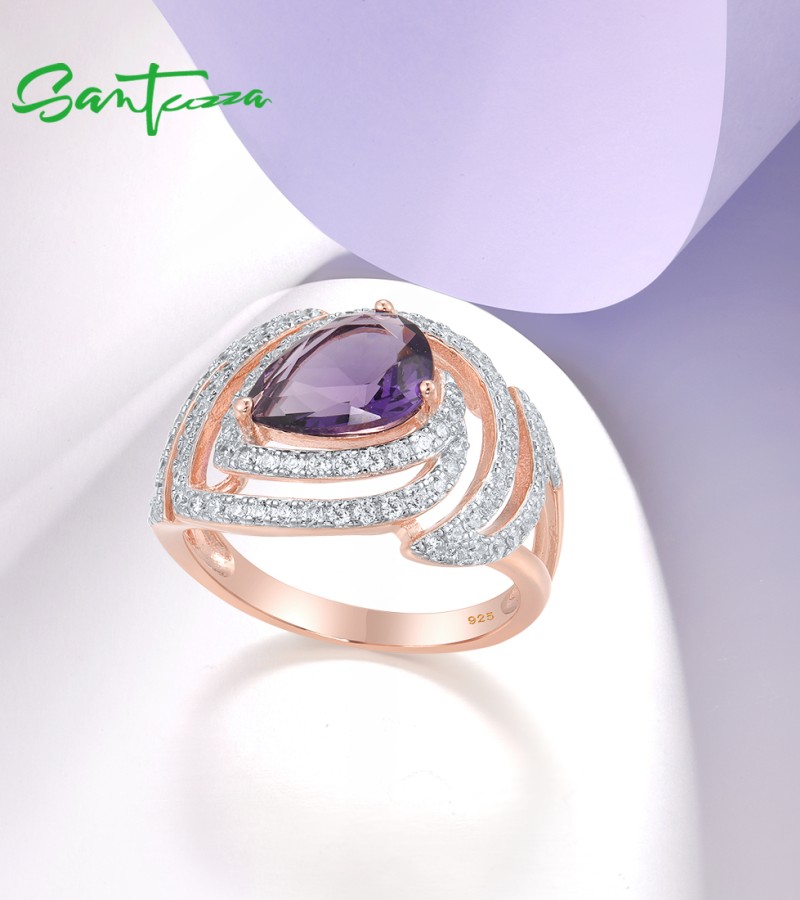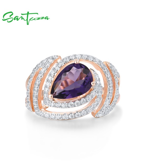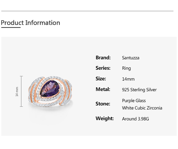 SANTUZZA 925 Sterling Silver Rings Pear Purple Stone White CZ Ring Fine Jewelry