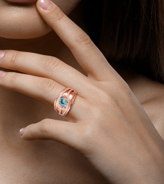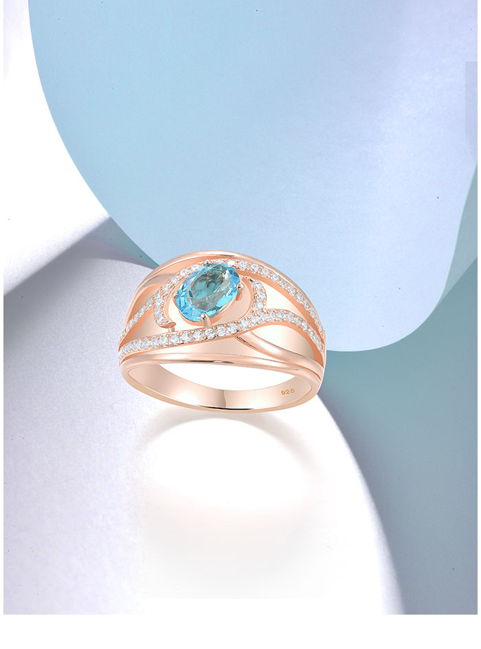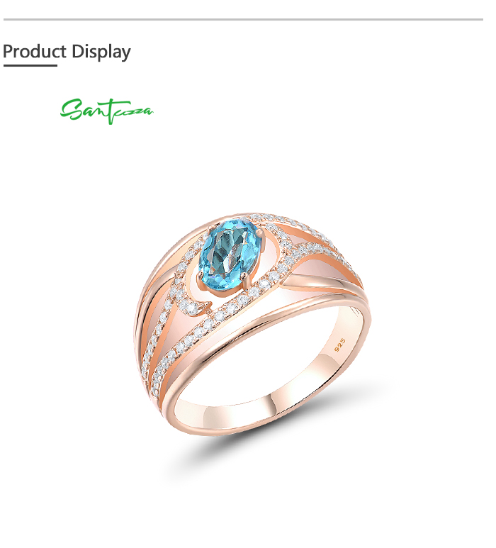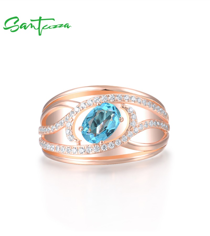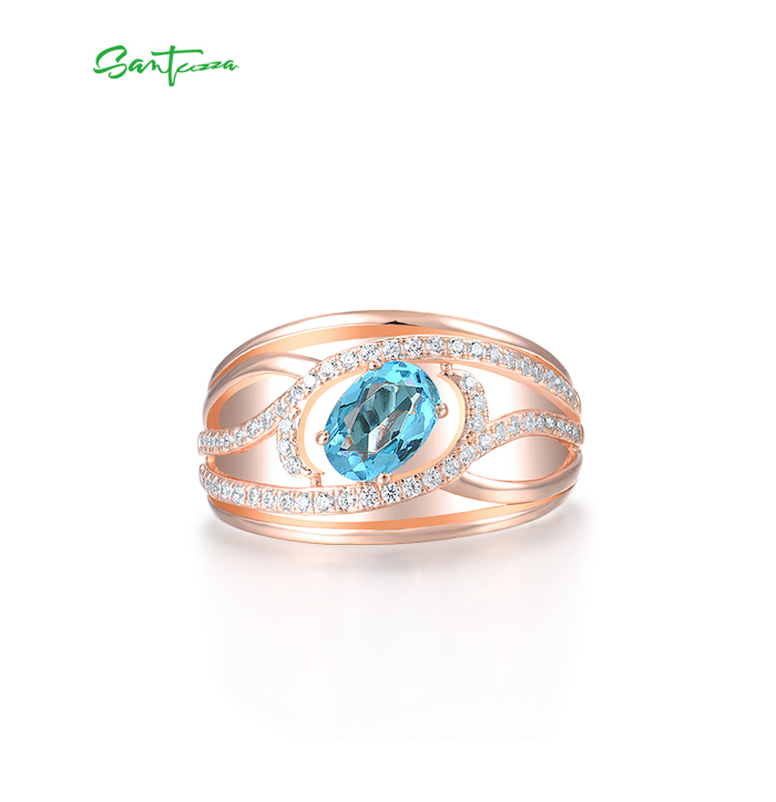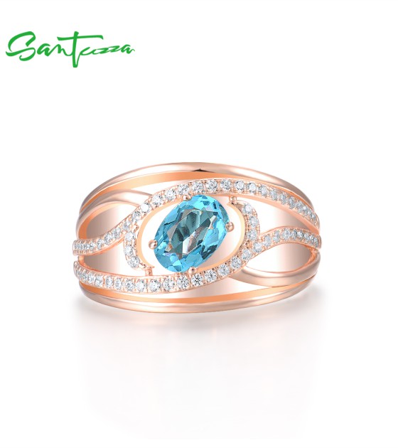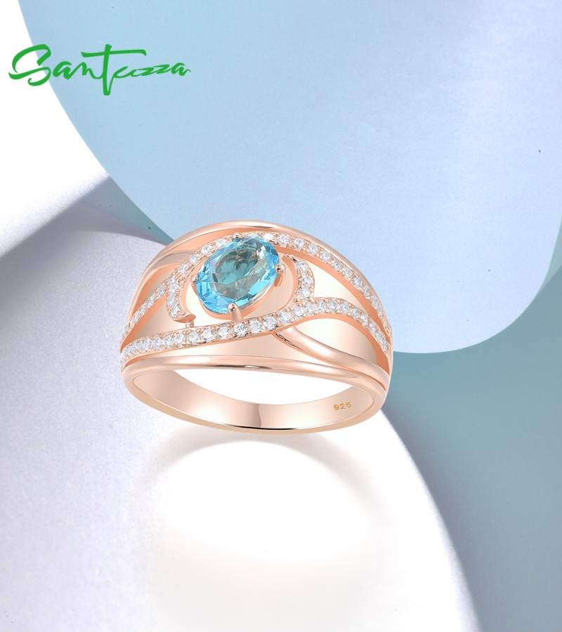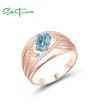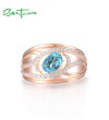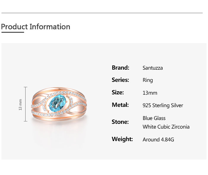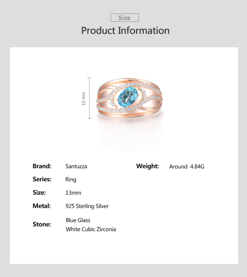 SANTUZZA 925 Sterling Silver Rings Blue Stone White Cubic Zirconia Fine Jewelry