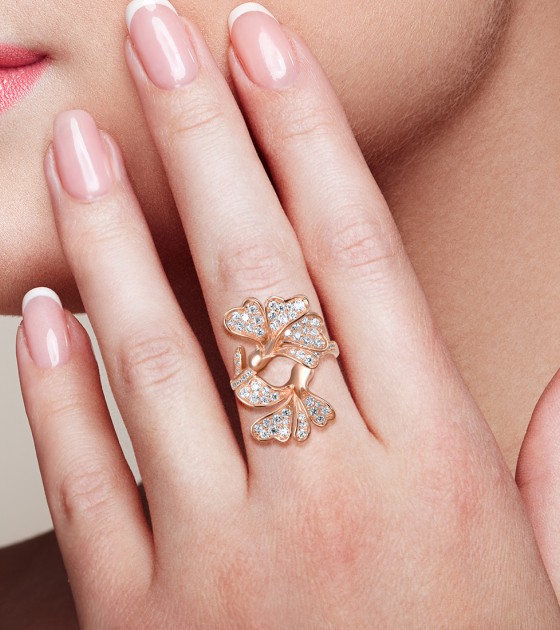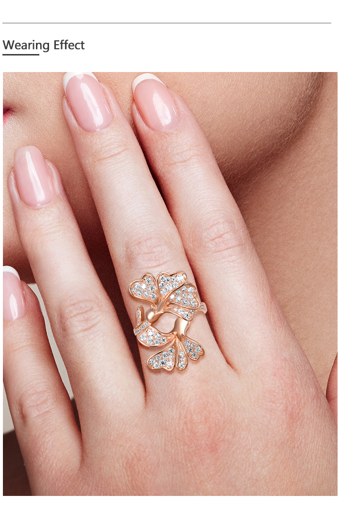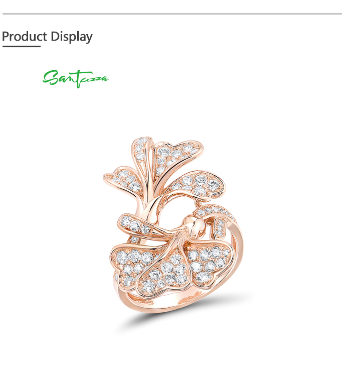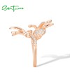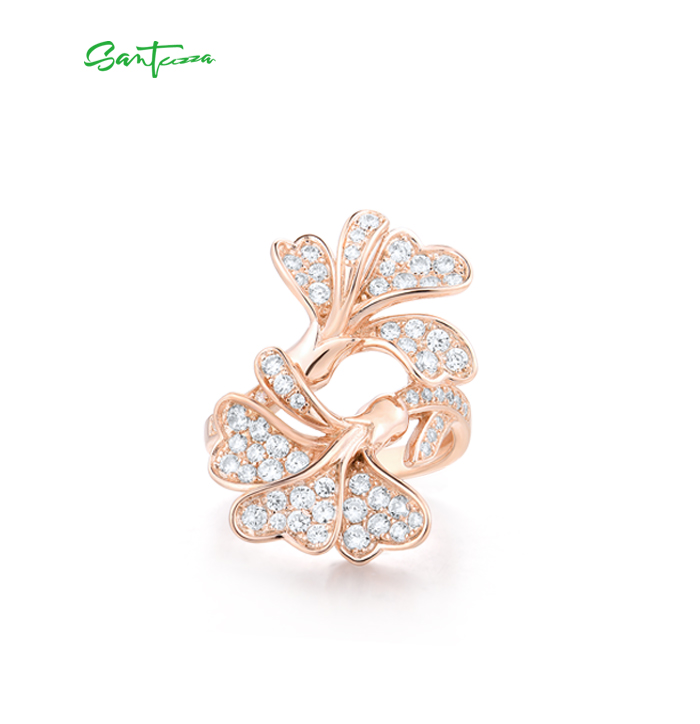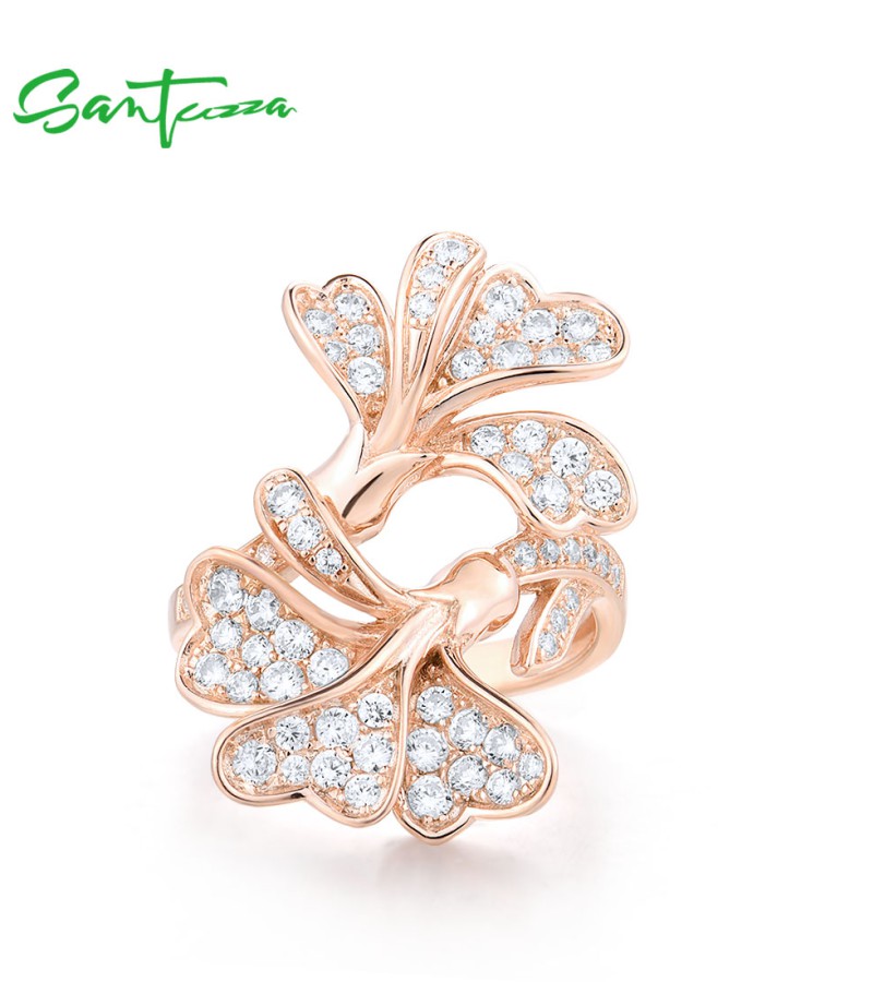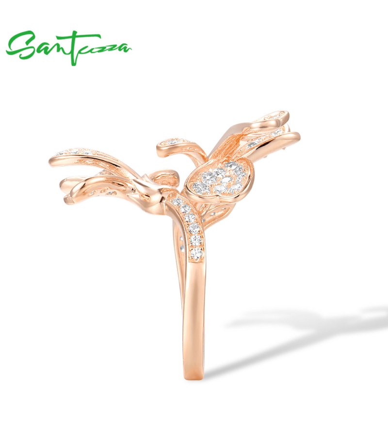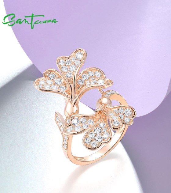 SANTUZZA Silver Ring 925 Sterling Silver White Cubic Zirconia Rose Gold Color Flower Fine Jewelry