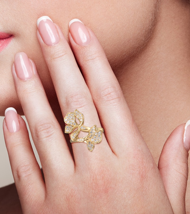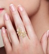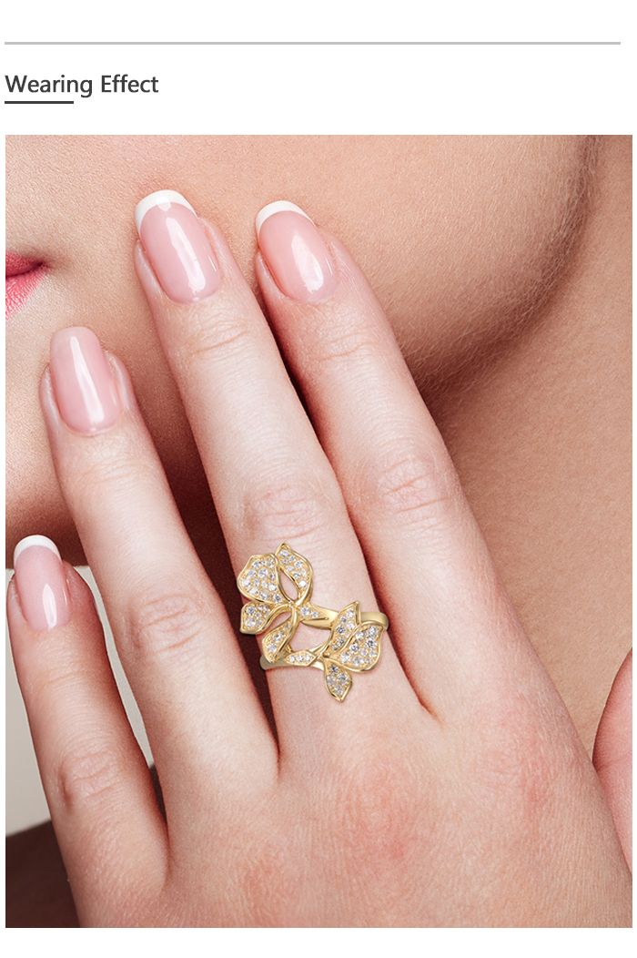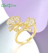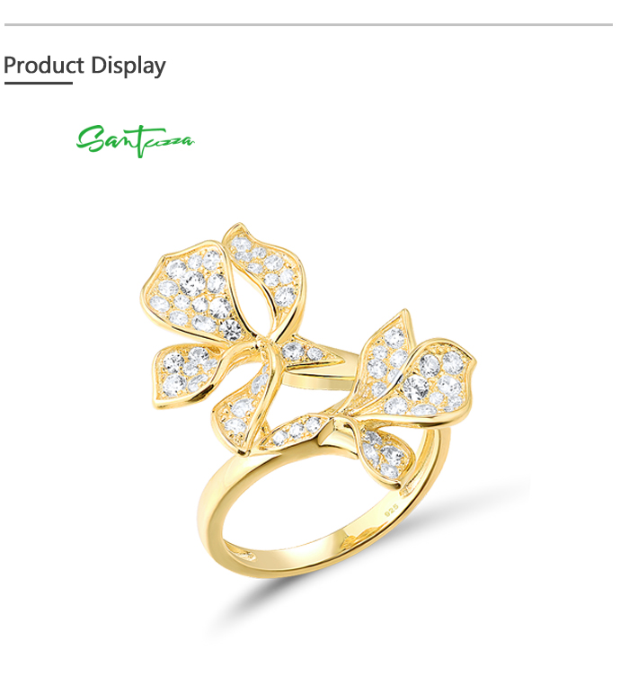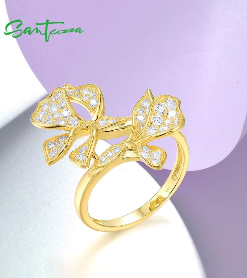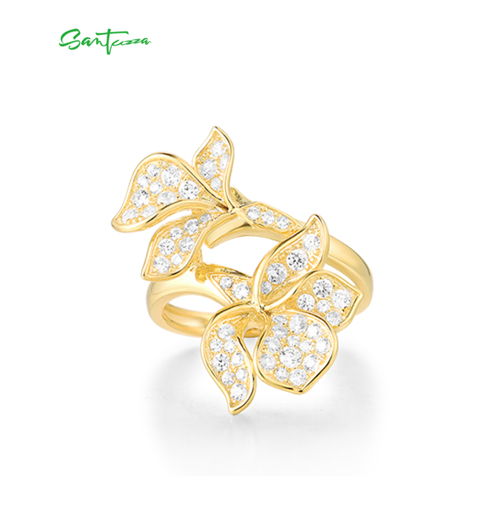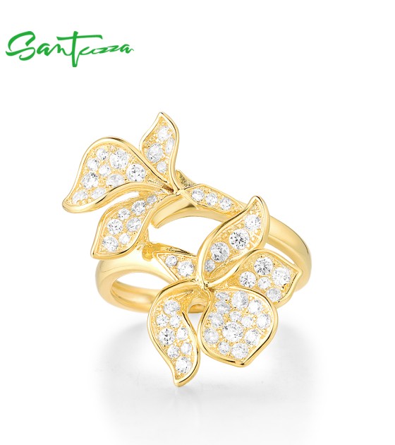 SANTUZZA 925 Sterling Silver Ring White Cubic Zirconia Gold Color Charming Flower Fine Jewelry