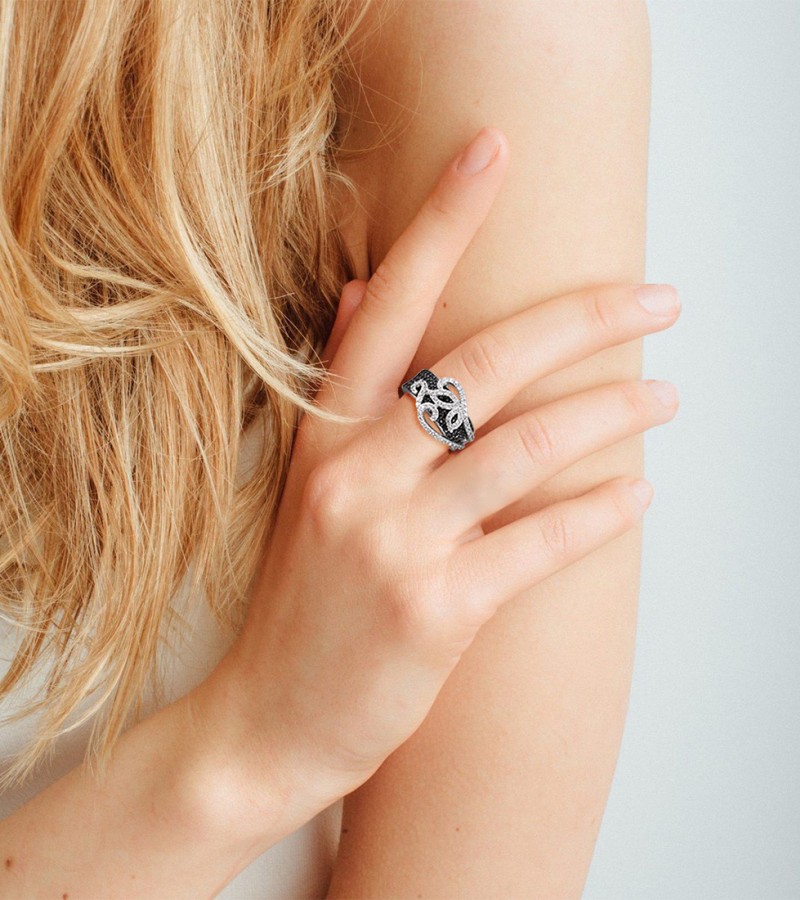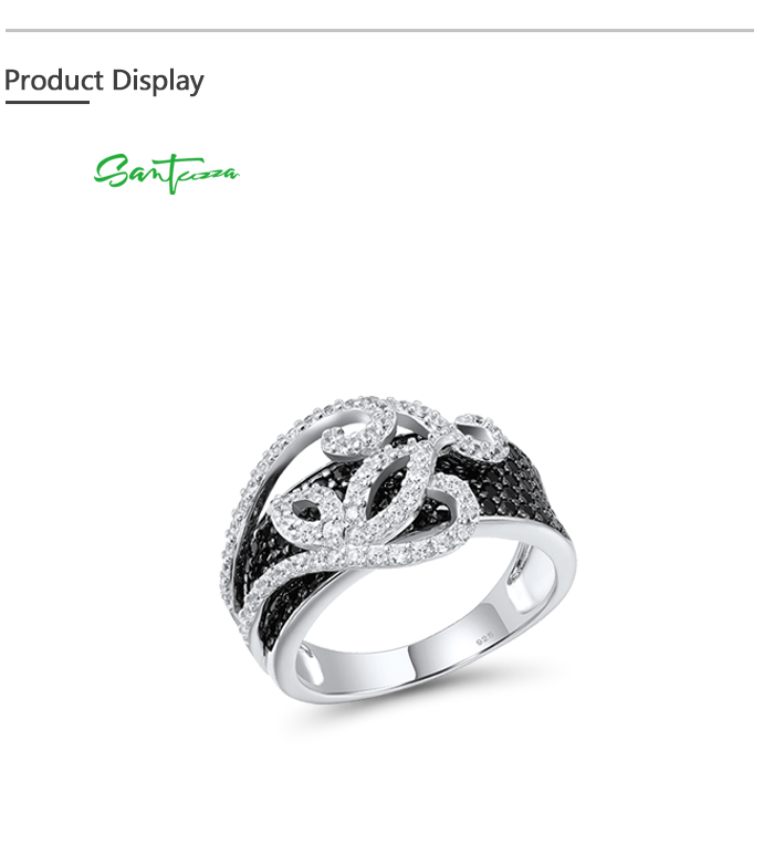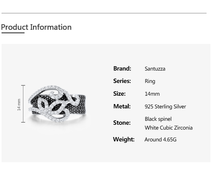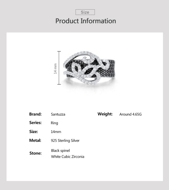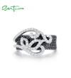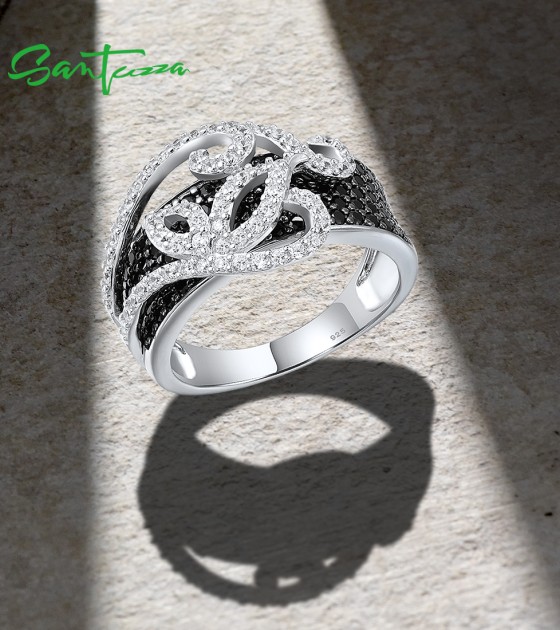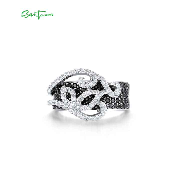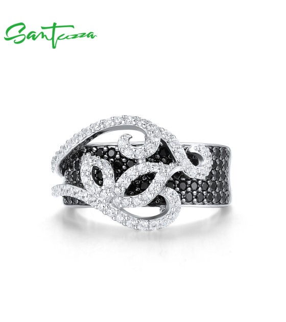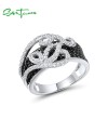 SANTUZZA 925 Sterling Silver Rings Black Spinel White Cubic Zirconia Jewelry