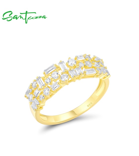 SANTUZZA 925 Sterling Silver Rings White Cubic Zirconia Gold Color Fine Jewelry