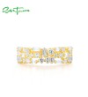 SANTUZZA 925 Sterling Silver Rings White Cubic Zirconia Gold Color Fine Jewelry