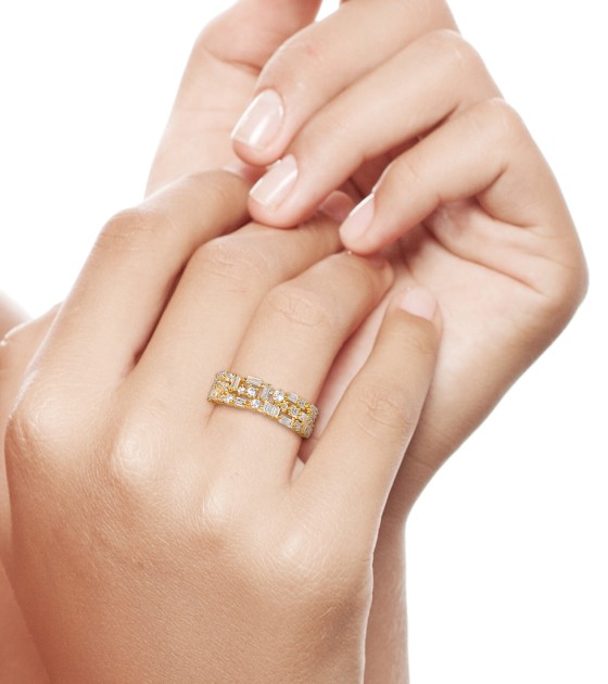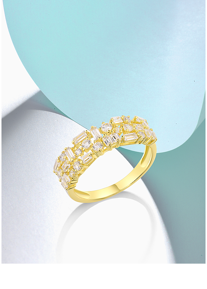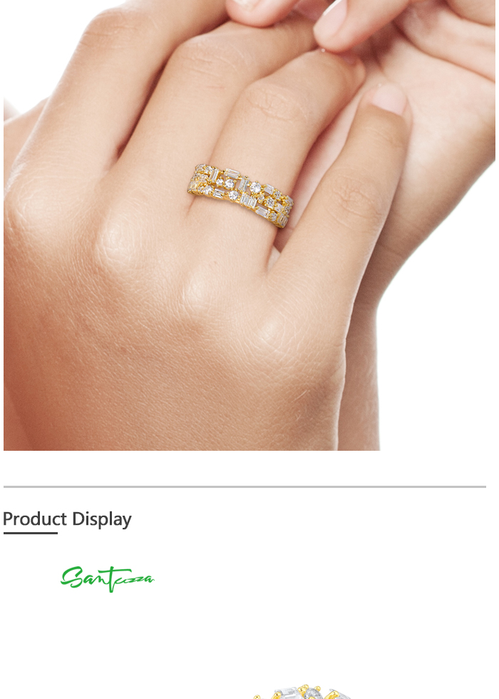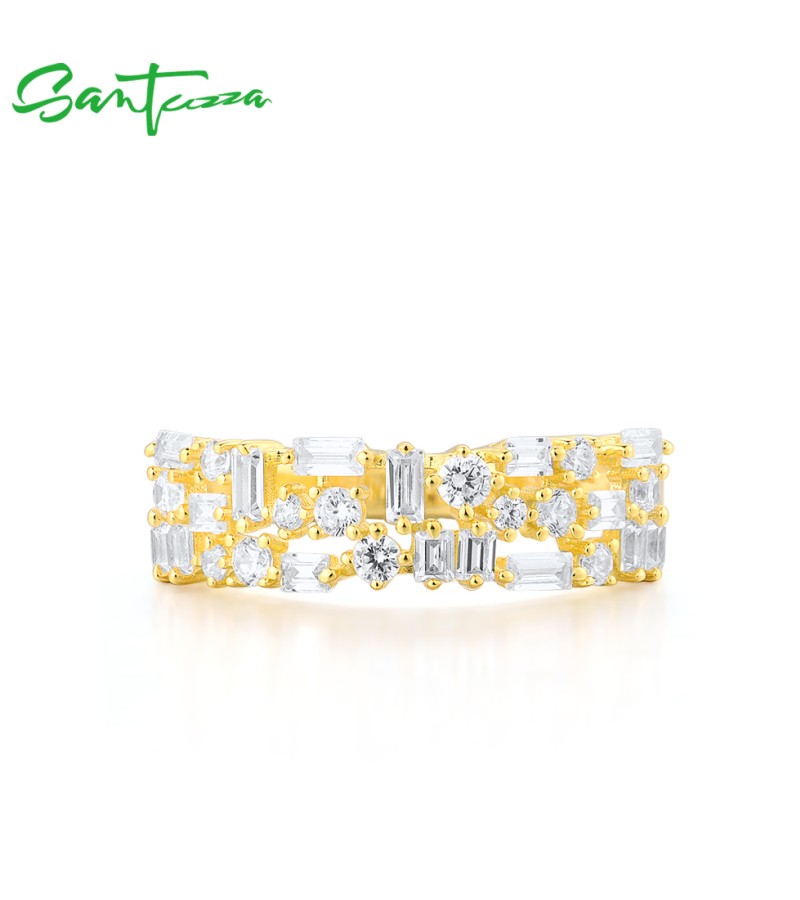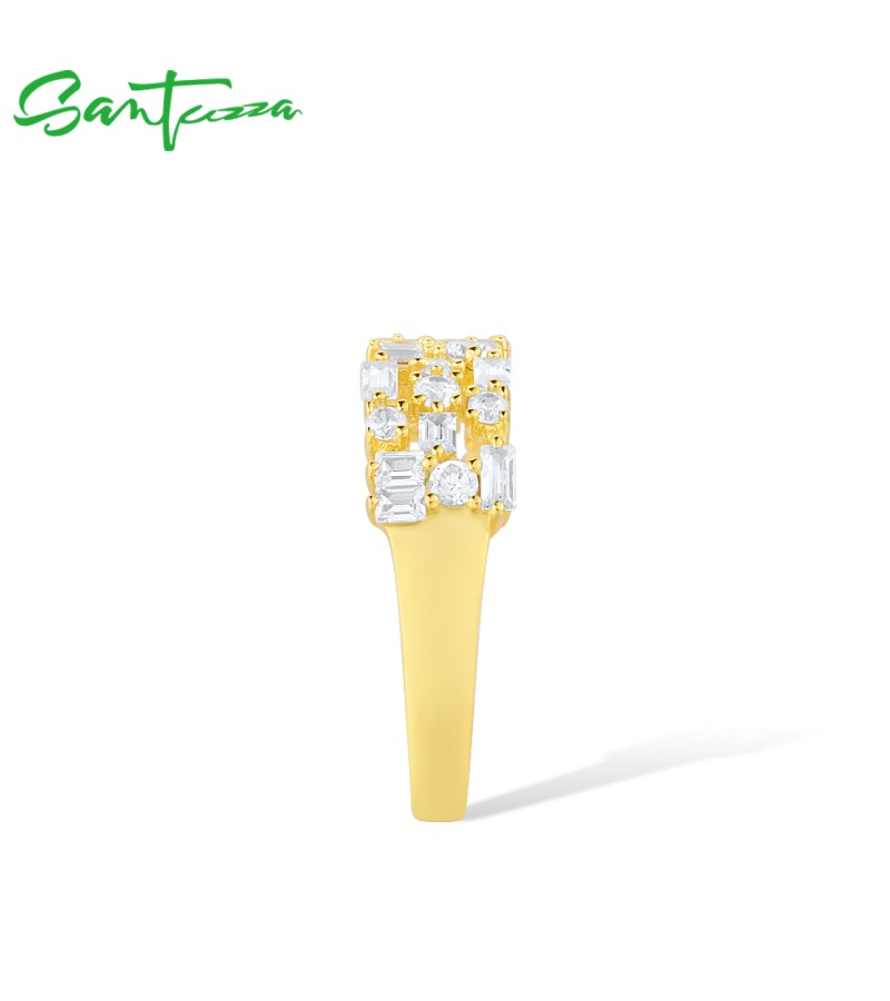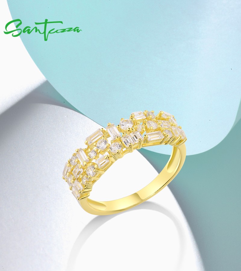SANTUZZA 925 Sterling Silver Rings White Cubic Zirconia Gold Color Fine Jewelry - US 9