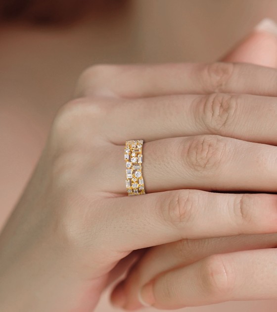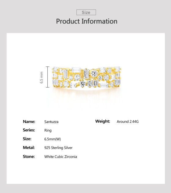 SANTUZZA 925 Sterling Silver Rings White Cubic Zirconia Gold Color Fine Jewelry - US 6