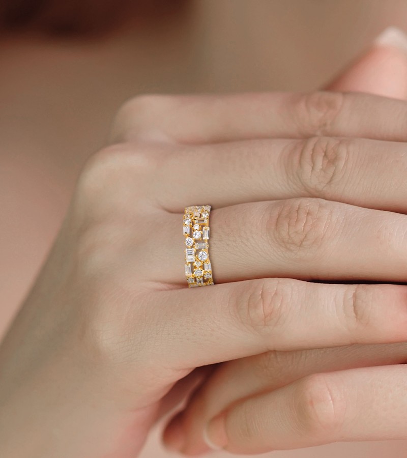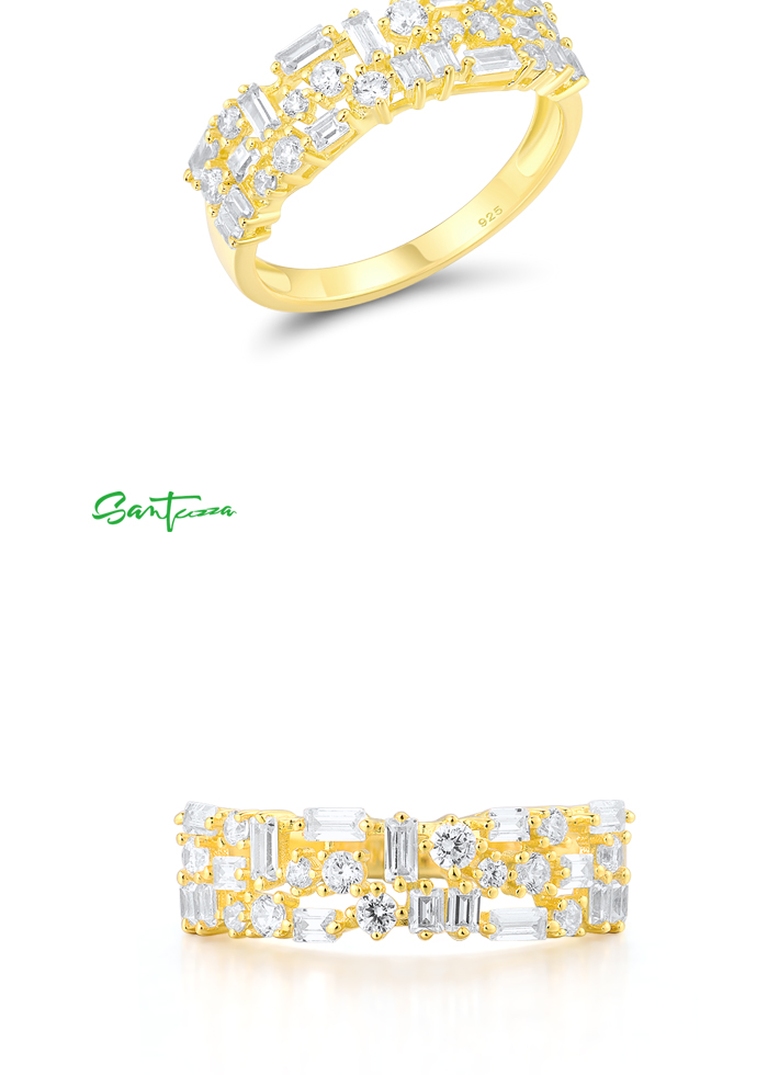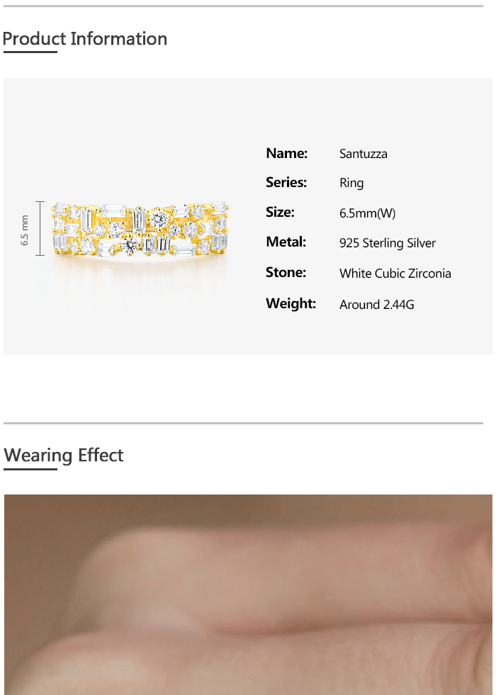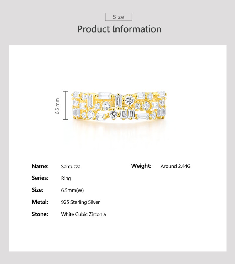 SANTUZZA 925 Sterling Silver Rings White Cubic Zirconia Gold Color Fine Jewelry - US 8
