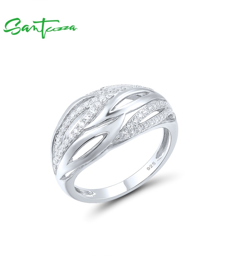 SANTUZZA 925 Sterling Silver Rings White Cubic Zirconia Ring Jewelry