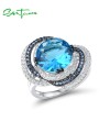 SANTUZZA Silver Ring 925 Sterling Silver Blue Glass Spinel White CZ Round Ring Jewelry