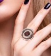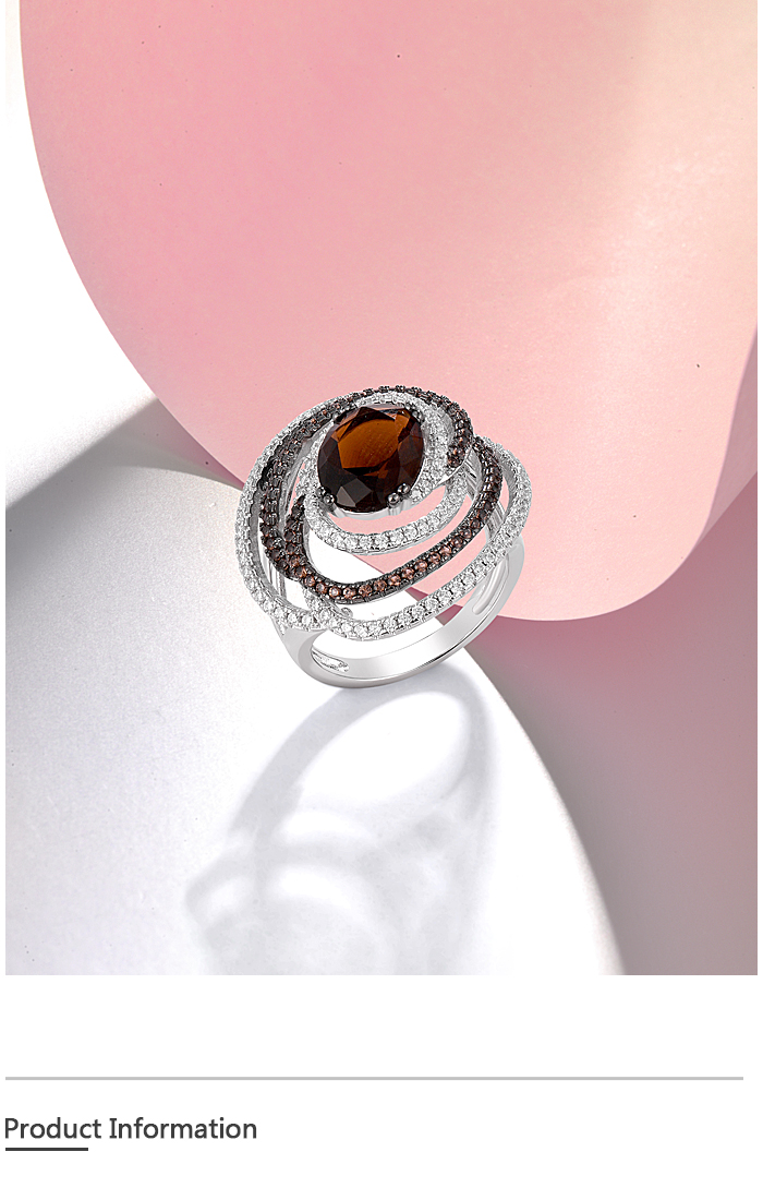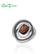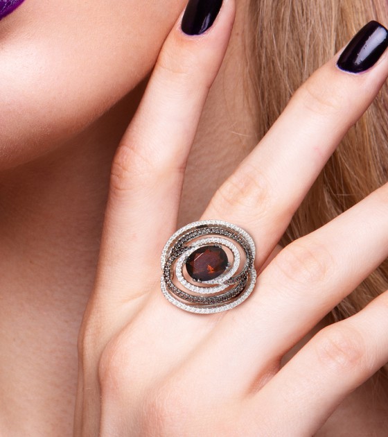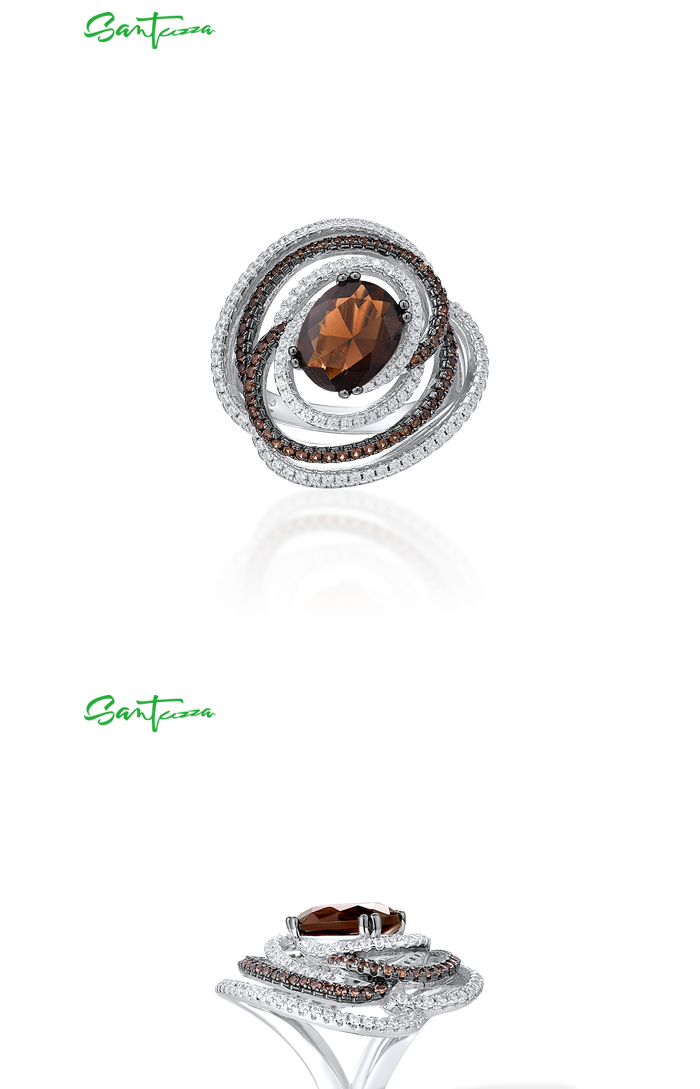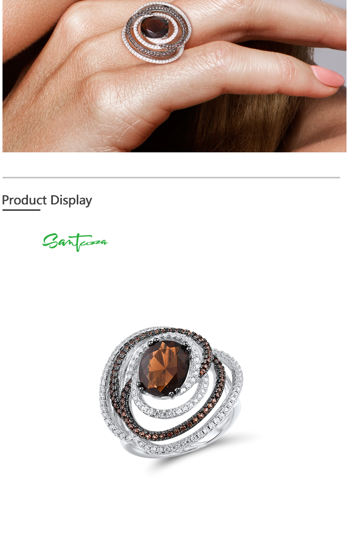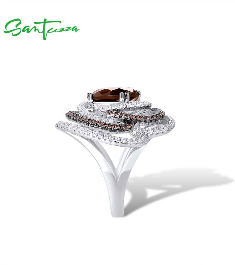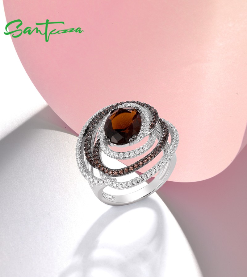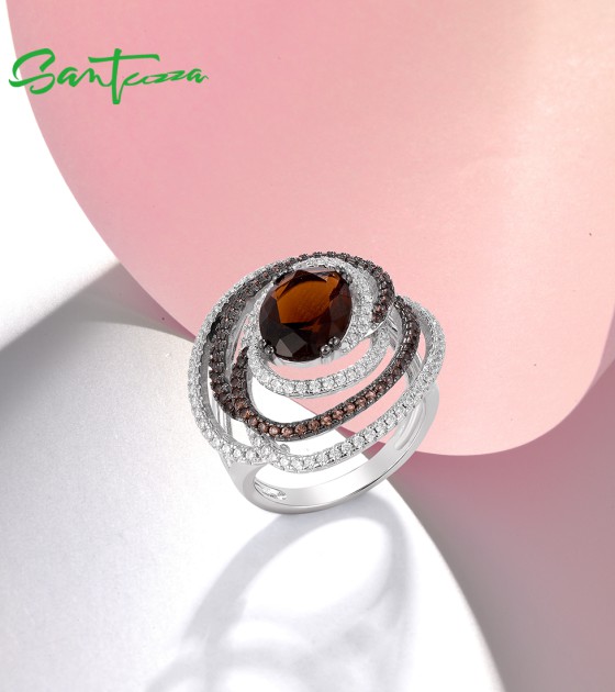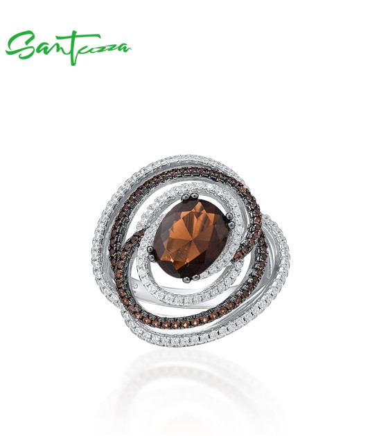 SANTUZZA Silver Ring 925 Sterling Silver Brown Smoky Glass Round Jewelry