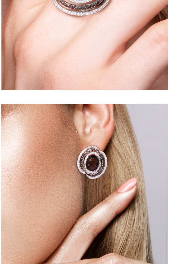 SANTUZZA Silver Earrings 925 Sterling Silver Round Shimmering Brown Smoky Glass серьги Jewelry