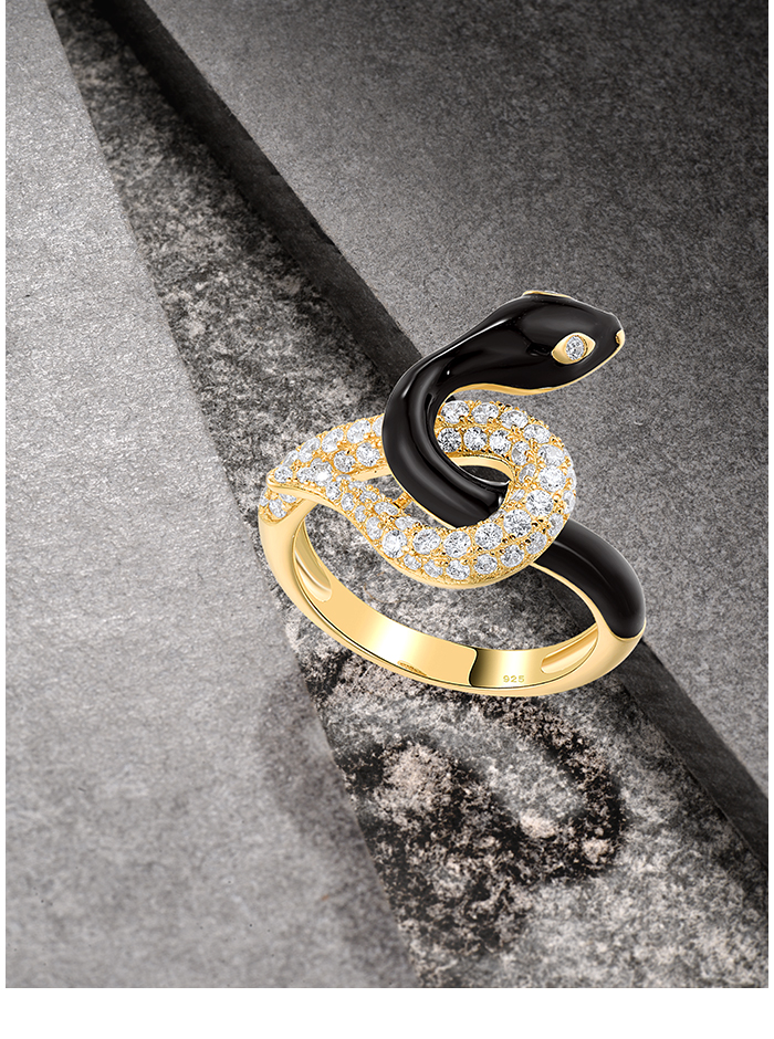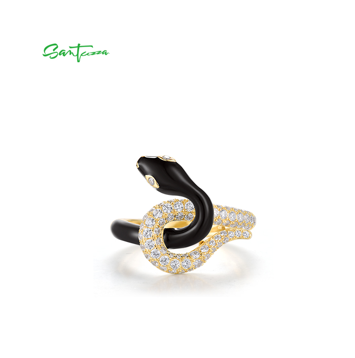 SANTUZZA 925 Sterling Silver Ring White CZ Enamel Glamorous Snake Animal Jewelry