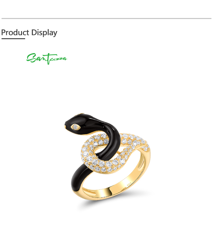 SANTUZZA 925 Sterling Silver Ring White CZ Enamel Glamorous Snake Animal Jewelry - US 7