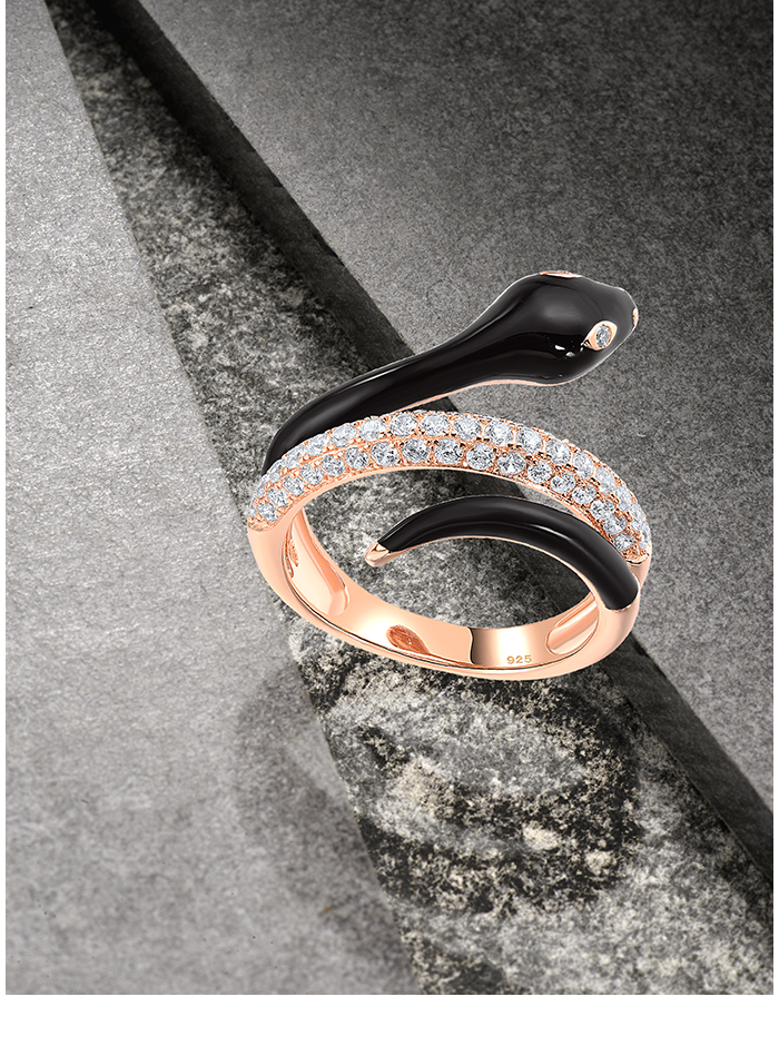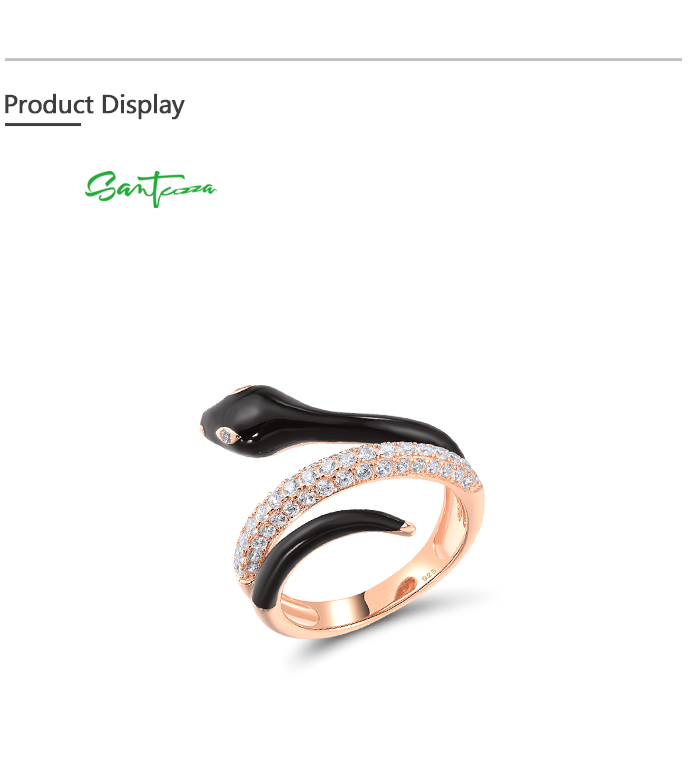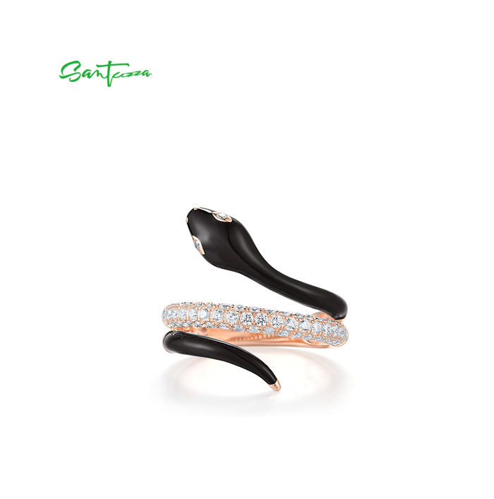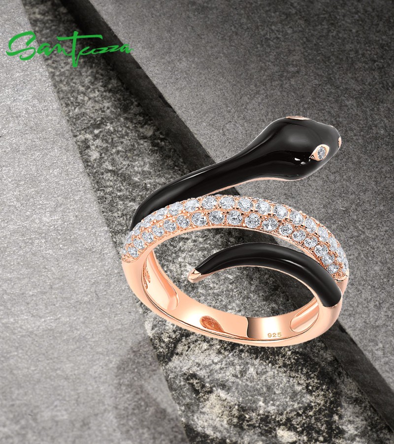 SANTUZZA 925 Sterling Silver Rings White CZ Enamel Wild Snake Animal Jewelry