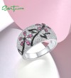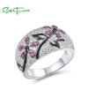 SANTUZZA 925 Sterling Silver Ring Created Ruby Black Spine White Cubic Zirconia Jewelry