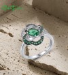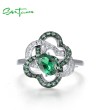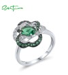 SANTUZZA 925 Sterling Silver Ring Green Spinel White CZ Flower Jewelry