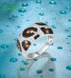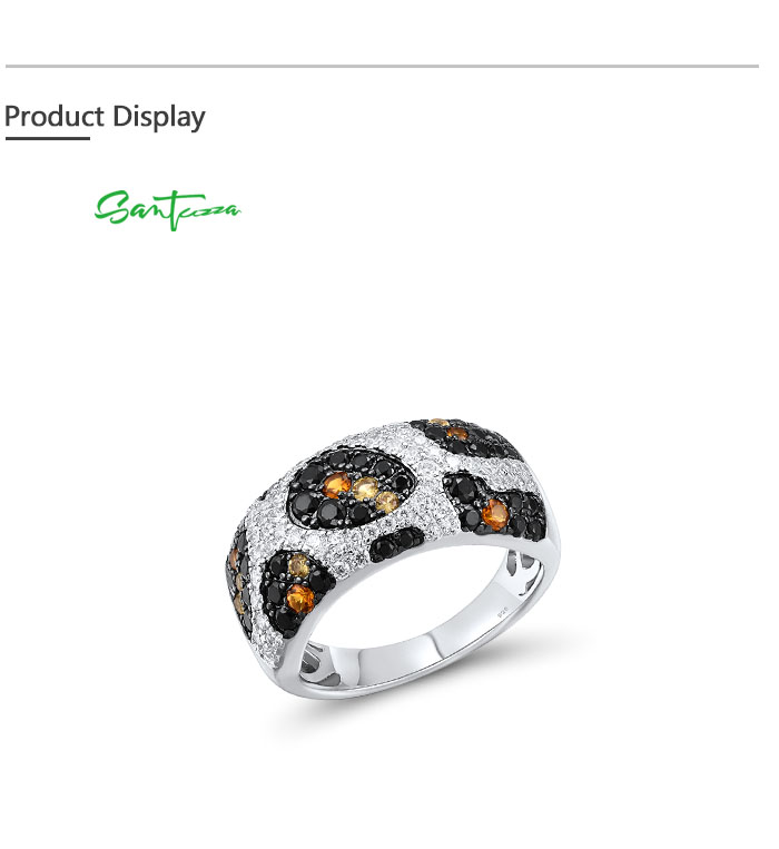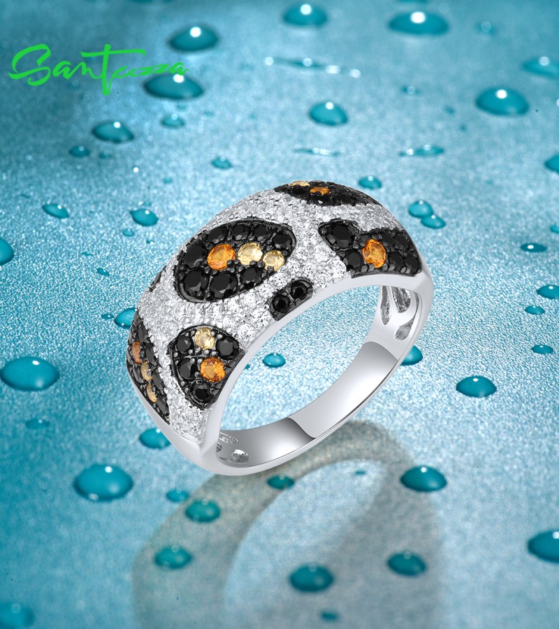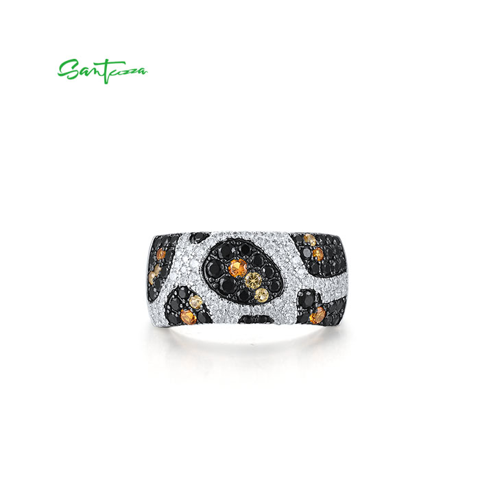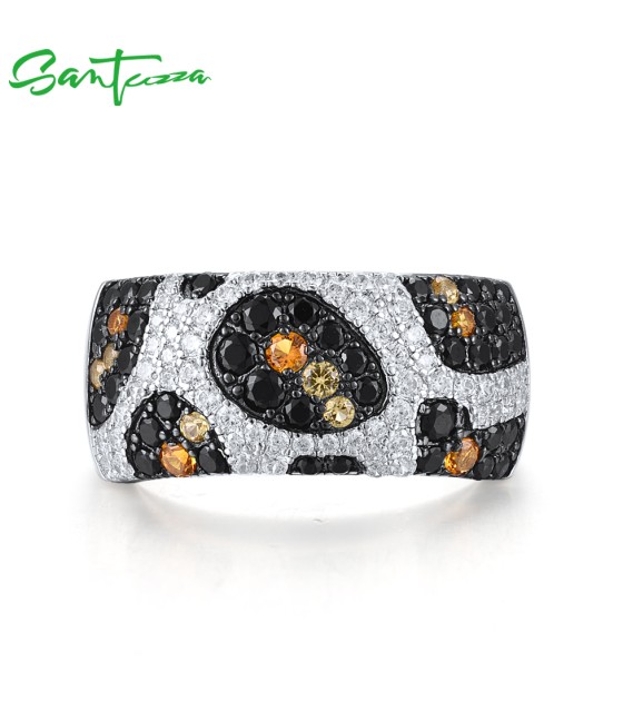SANTUZZA 925 Sterling Silver Rings Black Yellow White CZ Leopard Skin Jewelry