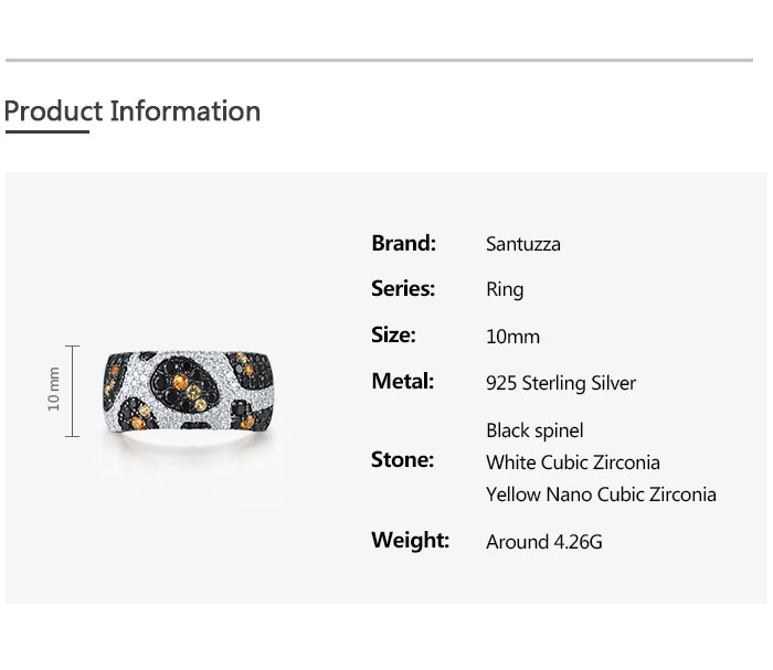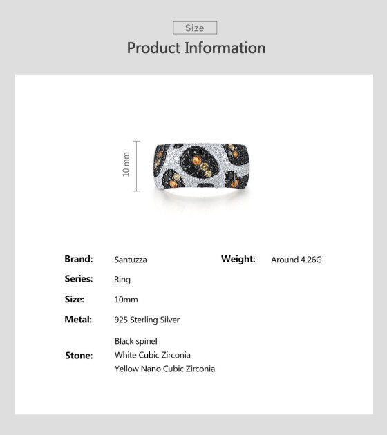 SANTUZZA 925 Sterling Silver Rings Black Yellow White CZ Leopard Skin Jewelry - US 10