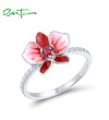 SANTUZZA 925 Sterling Silver Rings White CZ Created Ruby Flower Enamel Jewelry