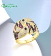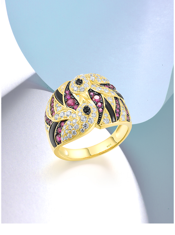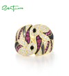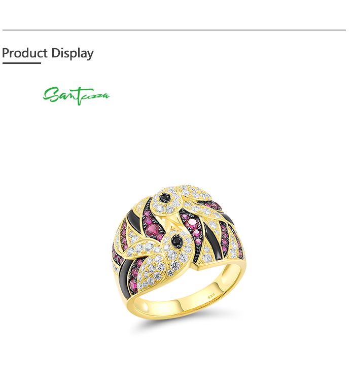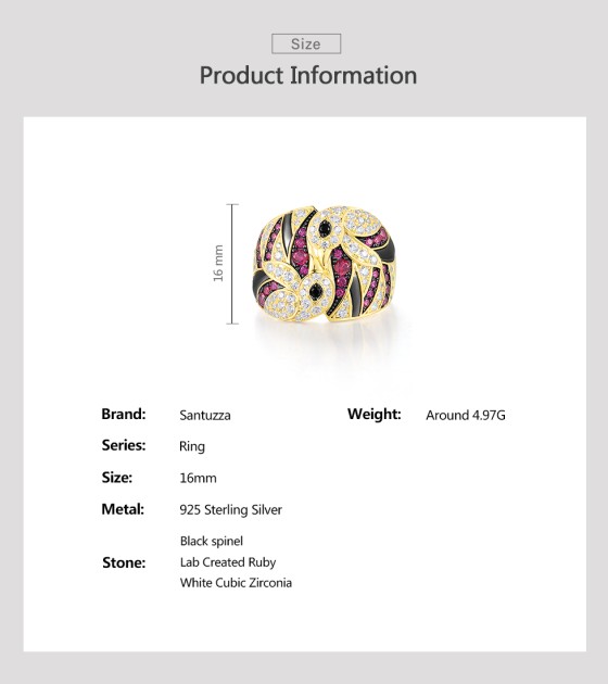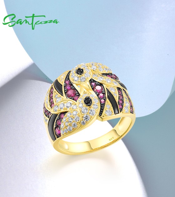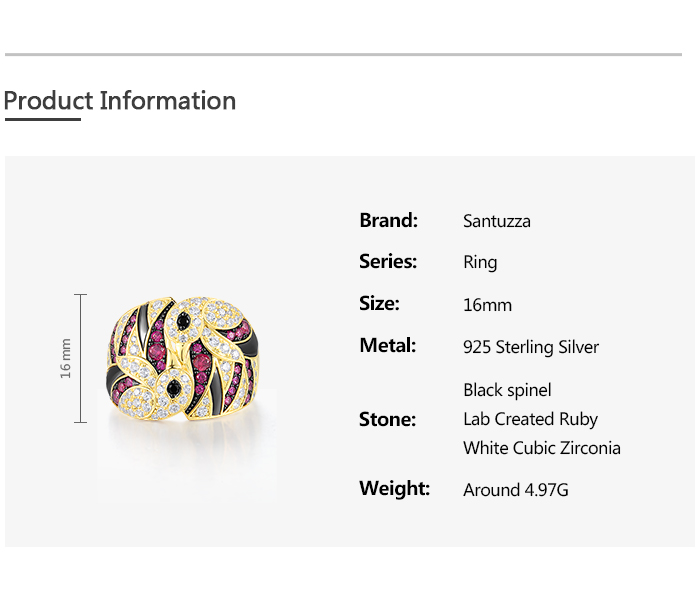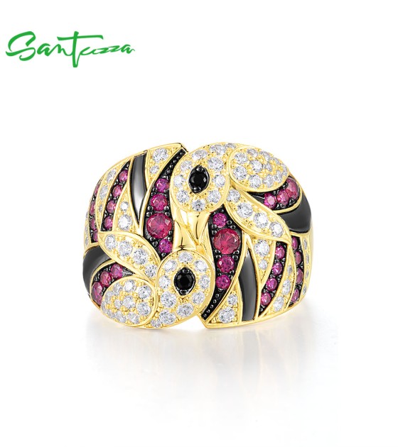 SANTUZZA 925 Sterling Silver Rings Created Ruby White CZ Lovely Birds Jewelry