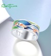 SANTUZZA 925 Sterling Silver Rings Green Spinel Blue Bird Enamel Rings Jewelry Handmade