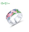 SANTUZZA 925 Sterling Silver Rings White CZ Pink Bird Enamel Rings Jewelry Handmade